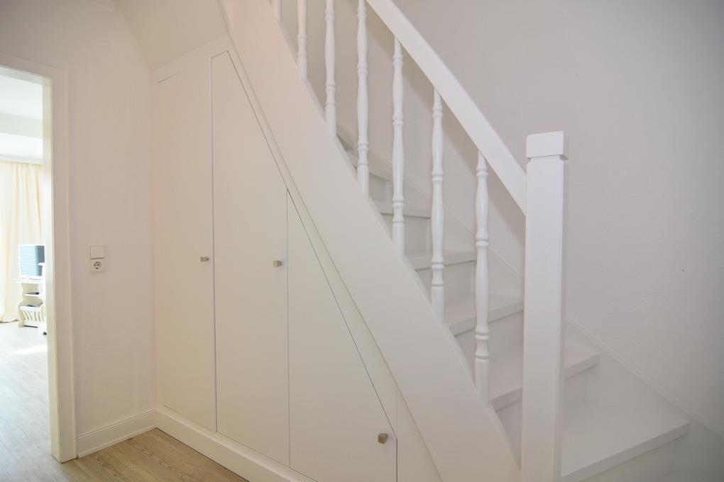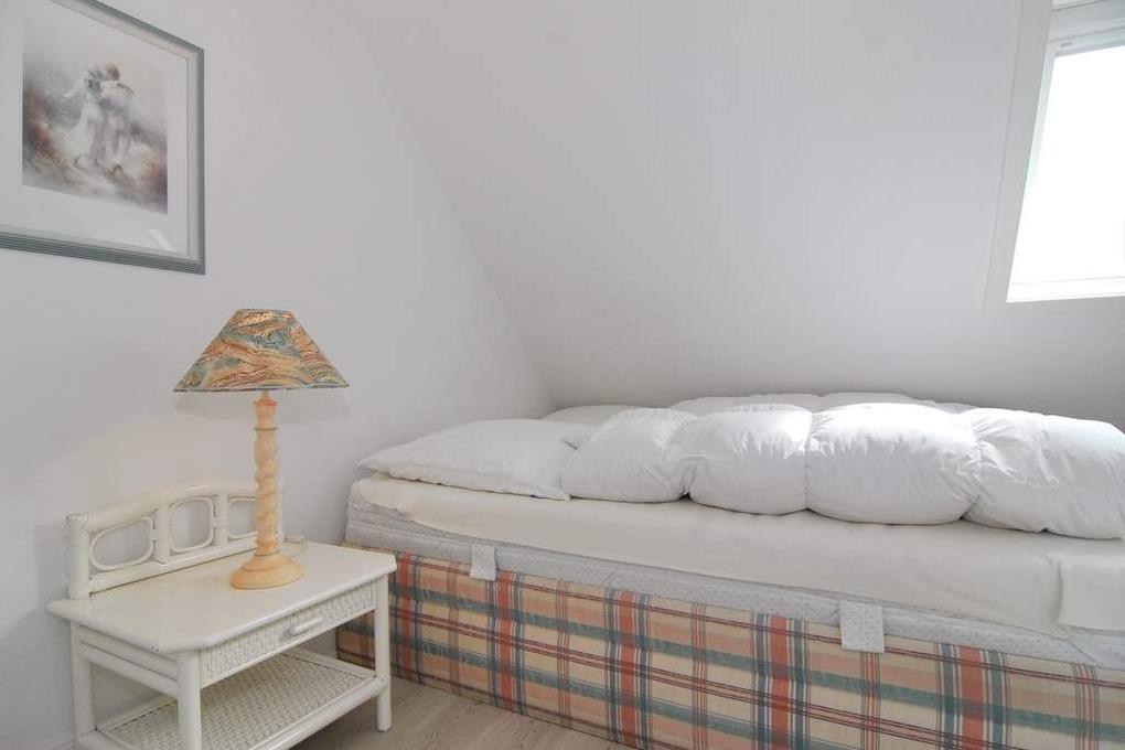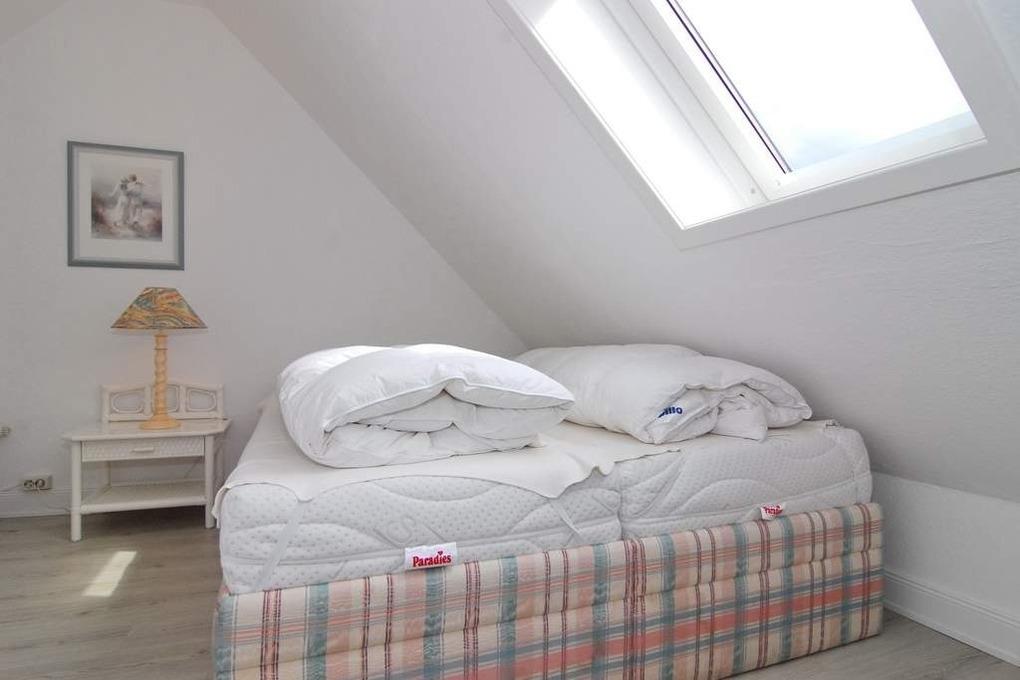 Hübsche 2-Zimmer-Ferienwohnung, ca. 45 m², 2. OG / DG, App. 14, "Nichtraucher". Obergeschoss: Wohnraum mit Schlafcouch und Sessel, Essplatz, Kabel-TV, Radio, W-Lan (ohne Gewähr), offene Küche mit Mikrowelle und Waschmaschine, Südbalkon mit Balkonmöbeln, Duschbad/WC. Dachgeschoss: Schlafzimmer mit Doppelbett (steht an der Wand) und Abstellraum. Tierhaltung und rauchen im Appartement ist nicht gestattet. Wohn- und Schlafzimmer sind mit Laminat ausgelegt. PKW-Stellplatz Nr. 14 auf dem Hof. Bettwäsche und Handtücher sind zur Anreise aufgezogen. Auf dem gegenüberliegenden Grundstück entsteht ab März 2024 ein Neubauvorhaben, hier kann es zu Lärmbelästigungen kommen.