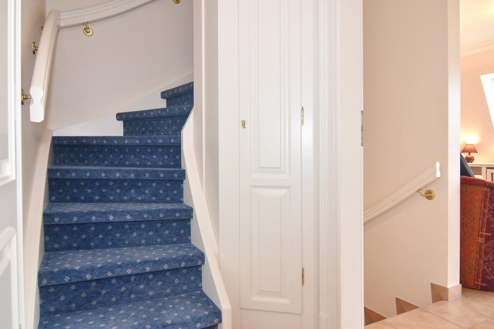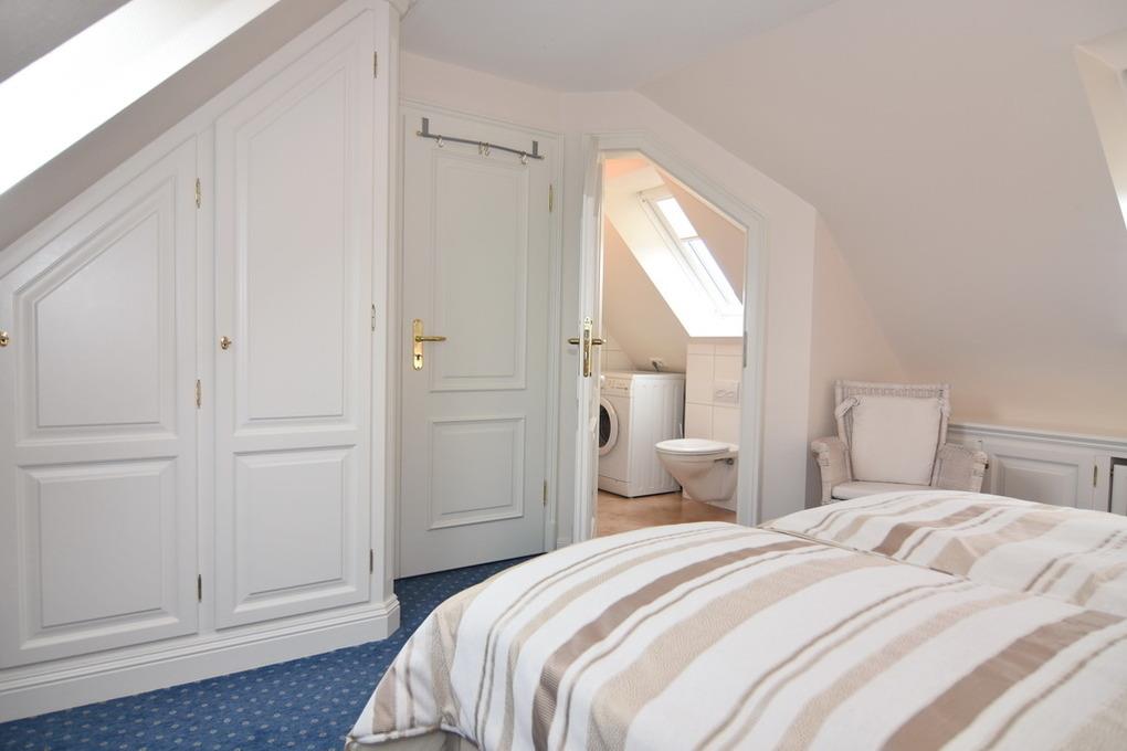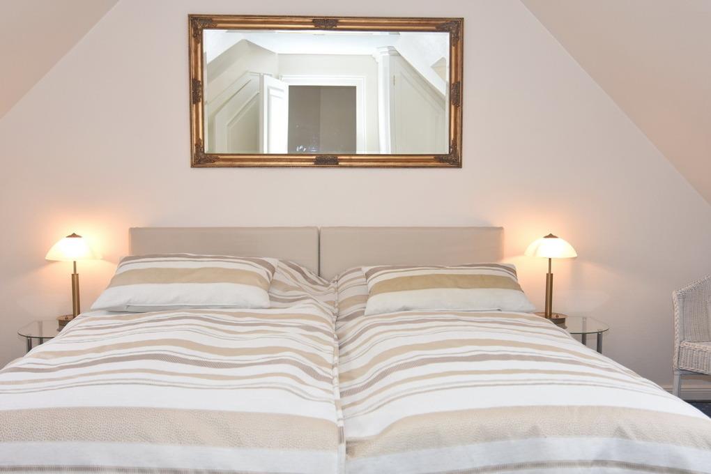 Exklusive 3-Zimmer-Ferienwohnung, "Nichtraucher" ca. 57 m². 1. OG.: Wohnraum mit Couch und 2 Sesseln, Essplatz, Kabel-TV, Stereo-Anlage, W-Lan, Südbalkon mit Balkonmöbeln, offene Küche mit Mikrowelle, Backofen und Geschirrspüler, Duschbad/WC. 1 Schlafzimmer mit Doppelbett (160x190) und Einbauschrank. DG: 1 Schlafzimmer mit Doppelbett, Einbauschrank und Gäste / WC mit Waschmaschine. PKW-Stellplatz am Haus. Tierhaltung verboten. Bettwäsche und Handtücher sind zur Anreise aufgezogen.