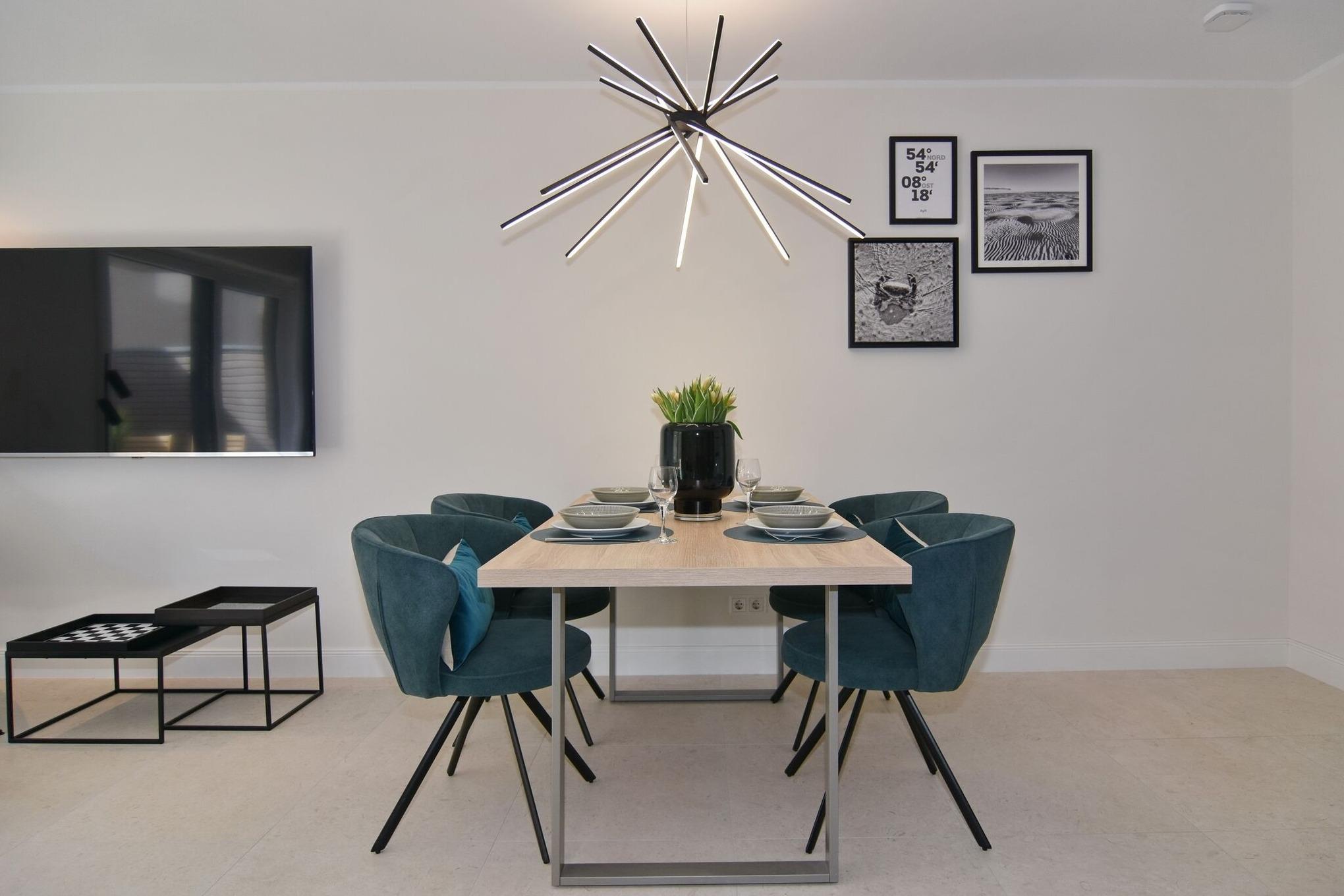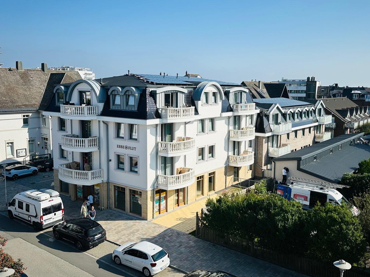 Das „Ebbe + Flut“ ist im Mai 24 eröffnet worden und befindet sich in zentraler Lage Westerlands. Die Innenstadt ist nur wenige Meter entfernt, den Strand erreichen Sie bequem zu Fuß in 400m Entfernung.