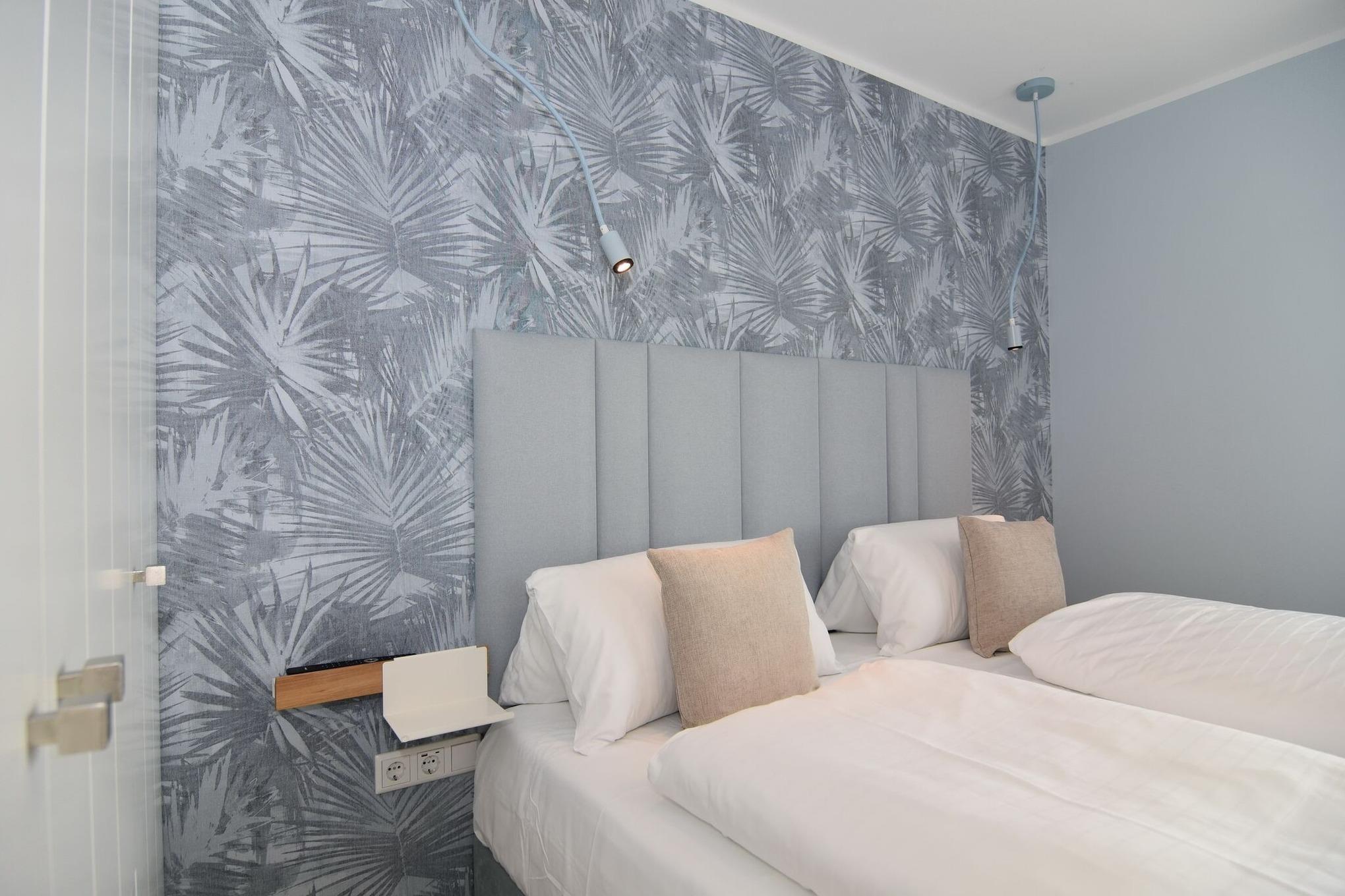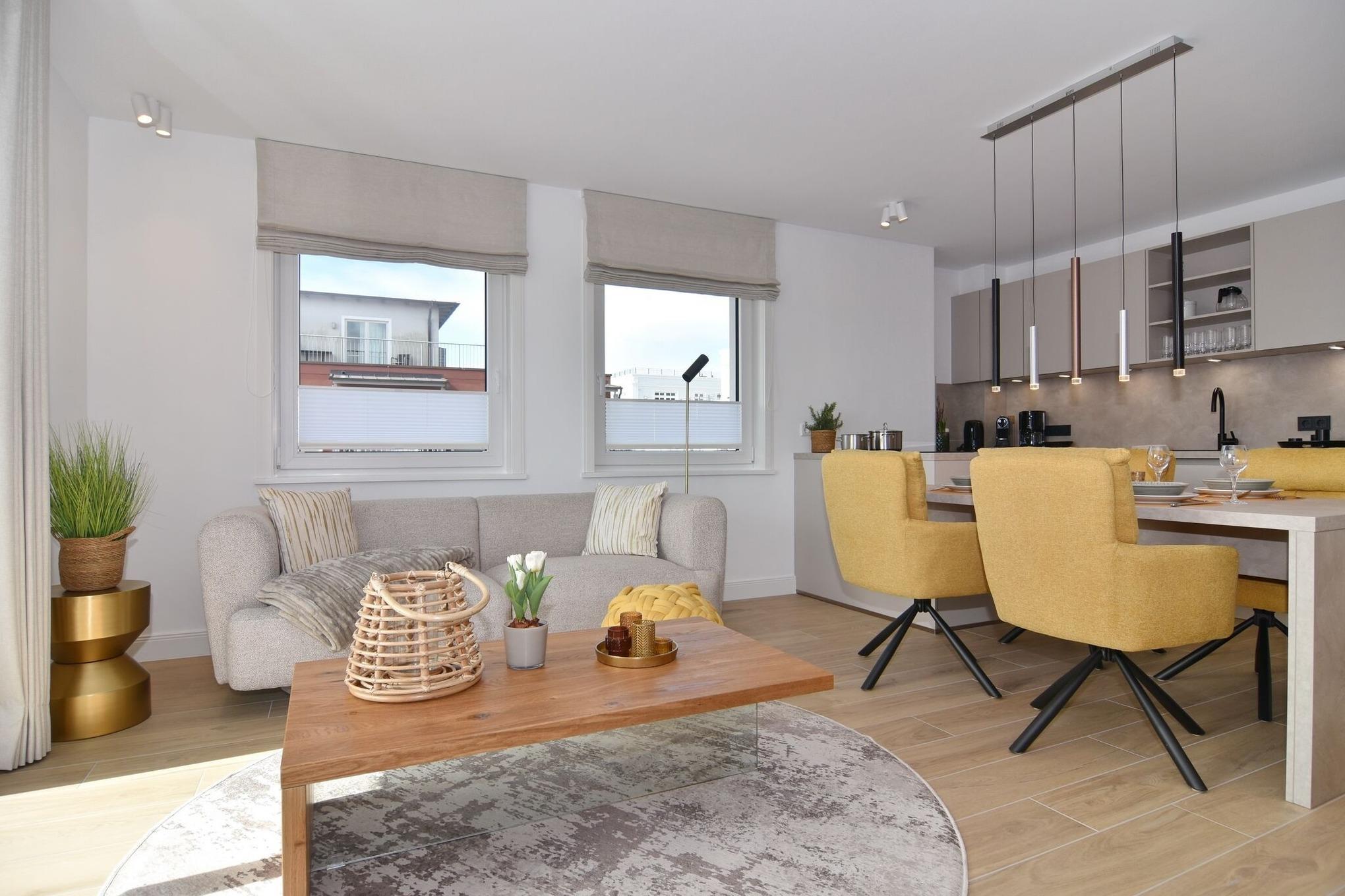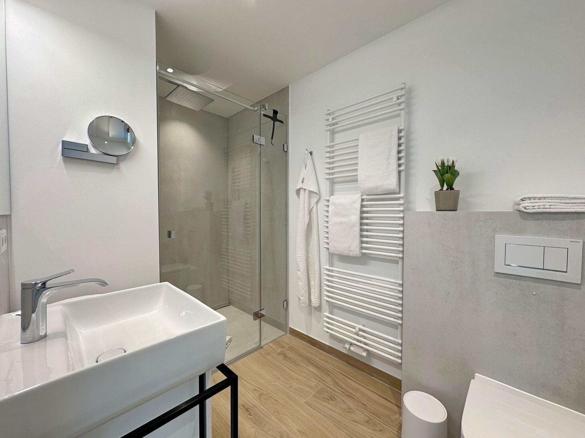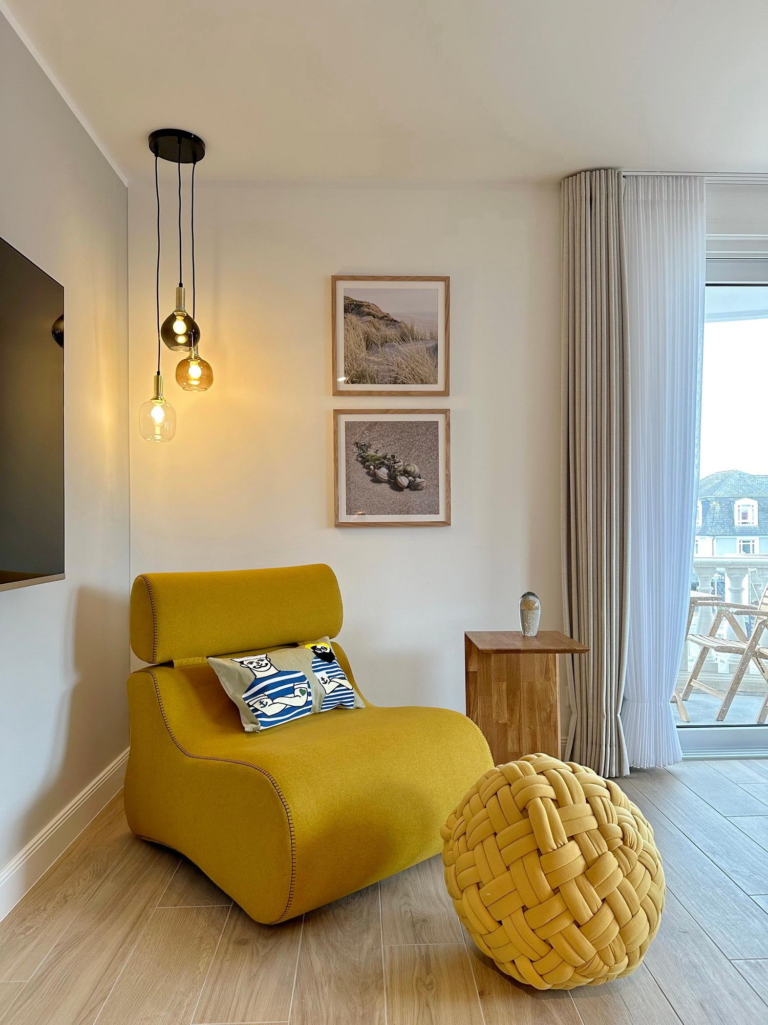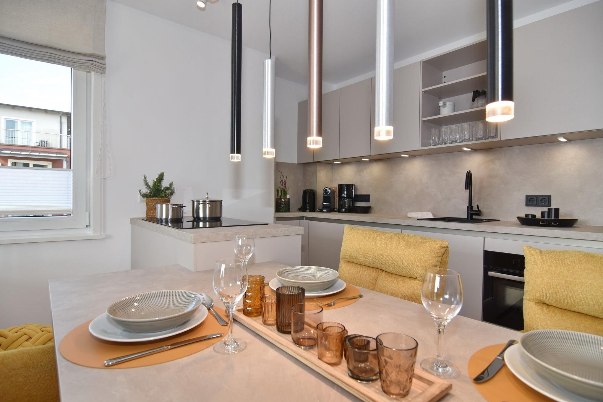 Die hochwertige 3-Zimmer-Wohnung im 2. OG mit ca. 81 qm ist für maximal 4 Personen. Vom geräumigen Flur mit Garderobe gelangen Sie in das Wohnzimmer mit offener Küche und möblierten Südbalkon. Die hochwertige Küche bietet neben Bora Induktionsherd auch Geschirrspüler, Tiefkühlschrank und Backofen mit integrierter Mikrowelle. Beide Schlafräume bieten mit Boxspringbetten (180x200 und 200x200) der Marke FBF hochwertigen Schlafkomfort und verfügen über Einbauschrank und TV (1 Kinderbett ist in beiden Schlafzimmern zubuchbar). Die Wohnung verfügt über 2 moderne Duschbäder mit Haar- und Handtuchtrockner. Die Wohnung ist mit großformatigen Fliesen ausgelegt und verfügt über Fußbodenheizung. Lediglich die Schlafräume sind mit Teppichware versehen. Internet (ohne Gewähr) und Smart-TV sind vorhanden.