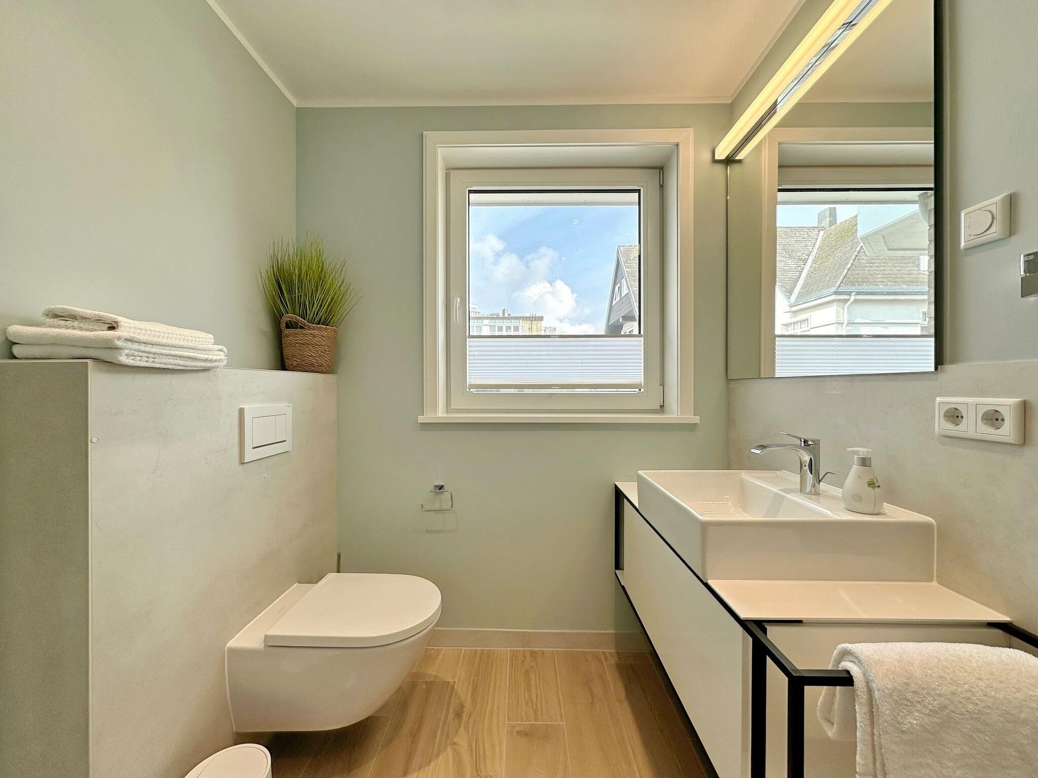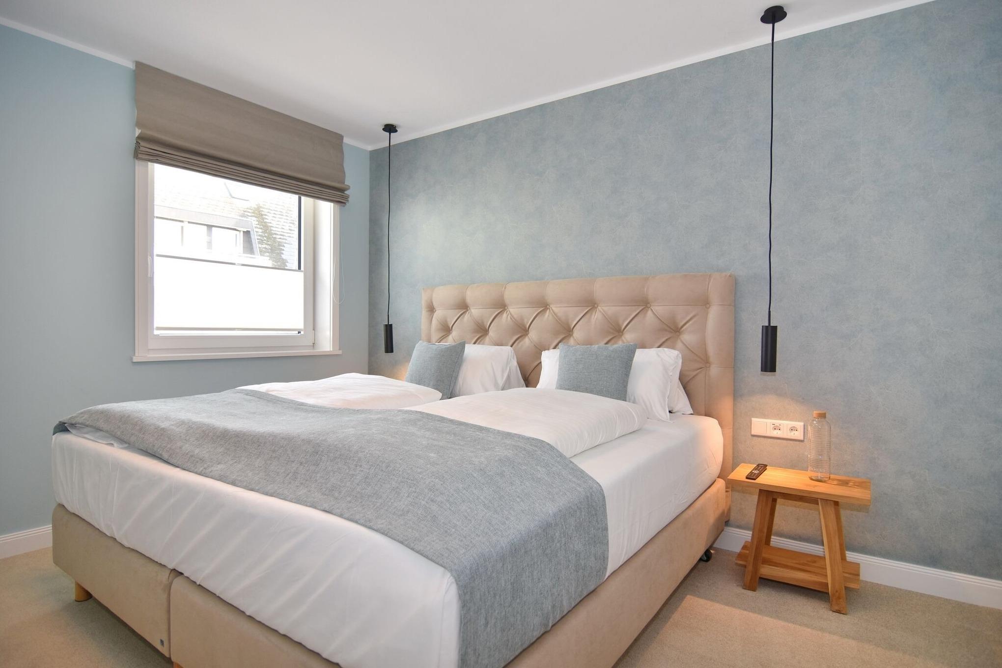 Im Haus befindet sich ein großzügiger Wellnessbereich mit Schwimmbad, finnischer Sauna und Ruheraum sowie eine Waschküche mit Gemeinschaftswaschmaschine/Trockner. Das Schwimmbad ist mit einer Größe von 20 x 5m das Größte unserer Anlagen. In der gesamten Anlage ist das Rauchen und Halten von Hunden untersagt. Bettwäsche und Handtücher sind zur Anreise aufgezogen. Ein Tiefgaragenstellplatz kann kostenpflichtig dazu gebucht werden. Eine Ladestation für E-Autos befindet sich am Haus und kann kostenpflichtig genutzt werden. Ihre Fahrräder können Sie in der Tiefgarage auf einen dafür vorgesehenen Abstellplatz stellen (ist nicht zusätzlich gesichert). (Am nordöstlich gelegenen Apartmenthaus (Bismarckstr. 5a) wird voraussichtlich von 6.10.25 - Ostern 2026 das Dach erneuert. Baulärm kann vorhanden sein.)