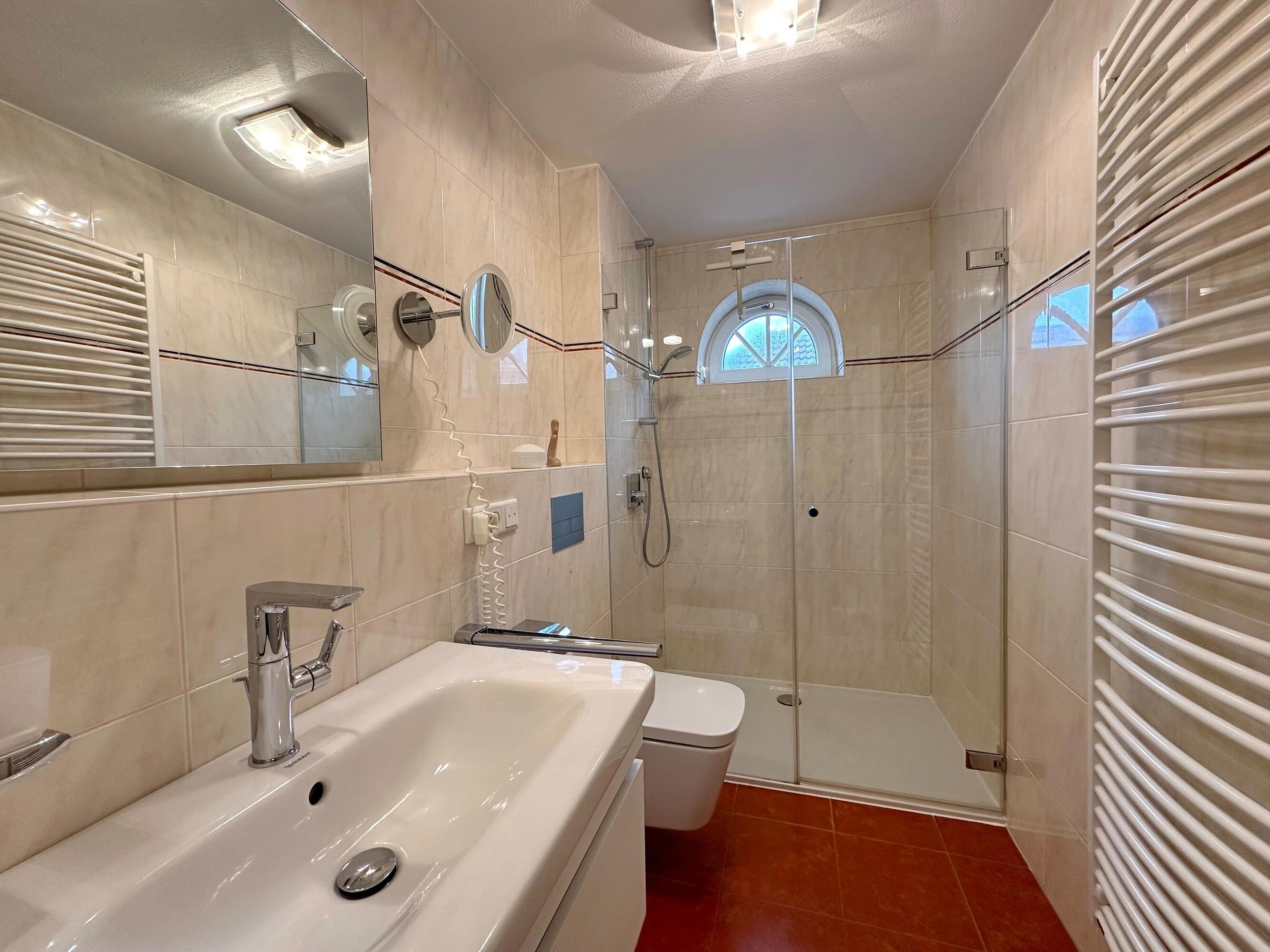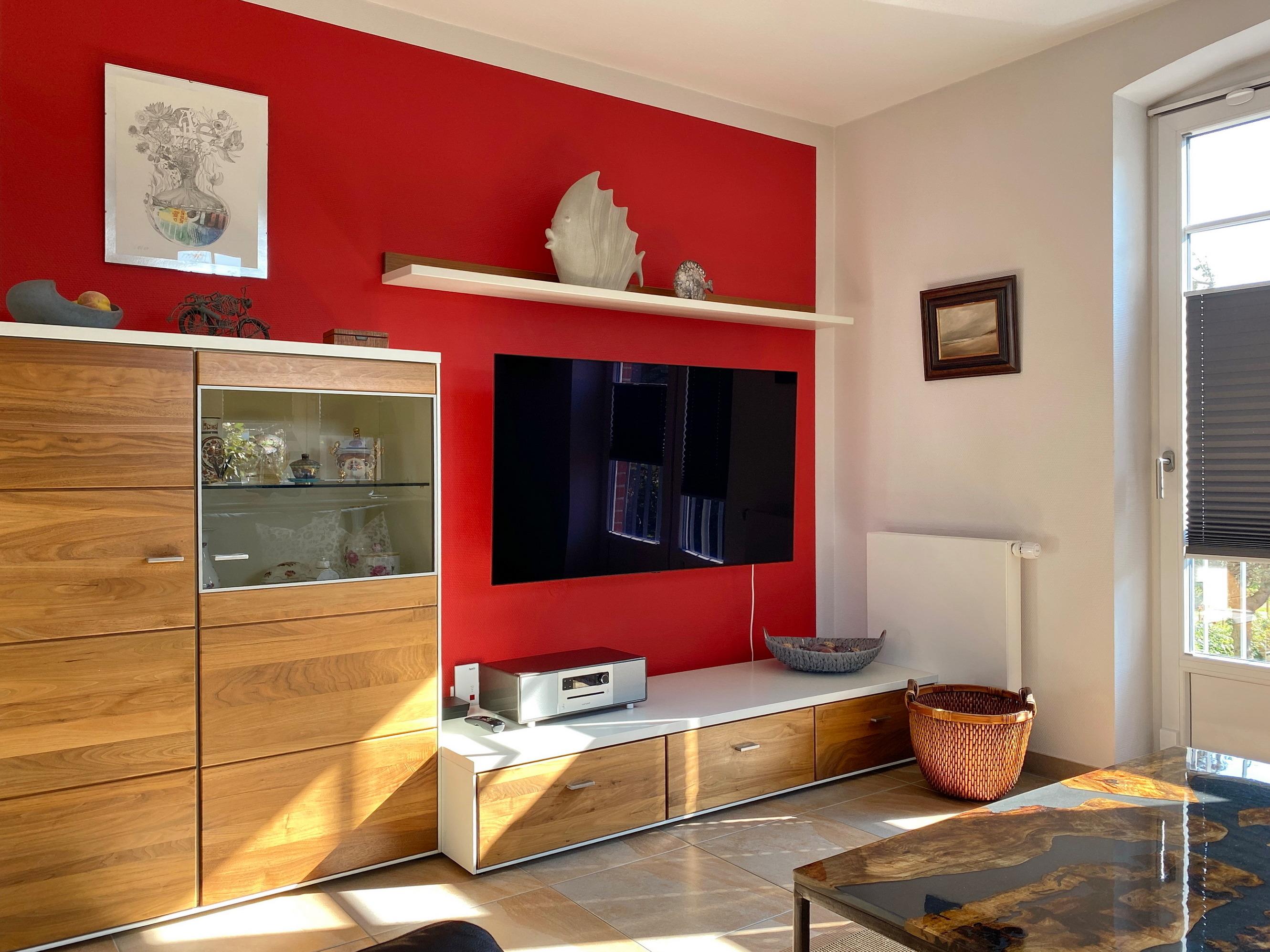Exklusive 2-Zimmer-Ferienwohnung unweit des Badestrands und der Fußgängerzone. Ca. 43m², 1.OG, Nichtraucher. Licht durchflutetes Wohnzimmer mit hochwertiger Ledergarnitur (Couch u. Sessel), Flat-TV, DVD, Stereoanlage, Internet u. Telefon-Flatrate (Festnetz), ohne Gewähr, offene Wohnküche mit Mikrowelle, Geschirrspüler u. Backofen, Essplatz am Fenster, Schlafzimmer mit Doppelbett (2x90x200) (kein Kinderbett), Flur. Westbalkon mit Bestuhlung, französischer Balkon gen Süden, Pkw-Stellplatz. Bettwäsche und Handtücher sind zur Anreise aufgezogen. Tierhaltung ist nicht gestattet!