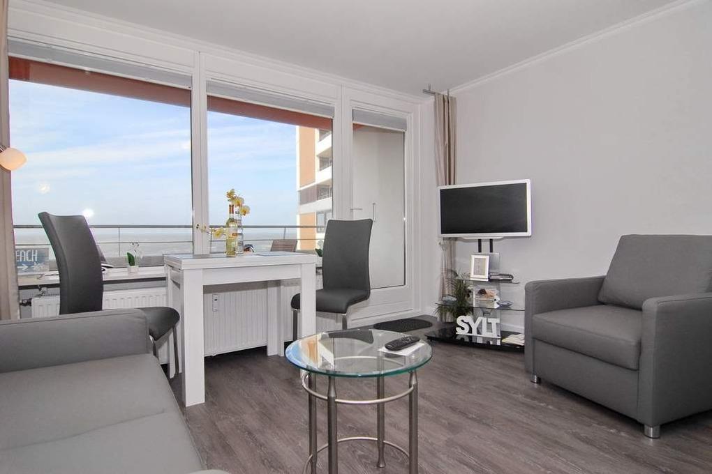Modernes 1-Zimmer-Appartement mit Meerblick und Balkon in Westerland, ideal für erholsame Tage an der Nordsee.
