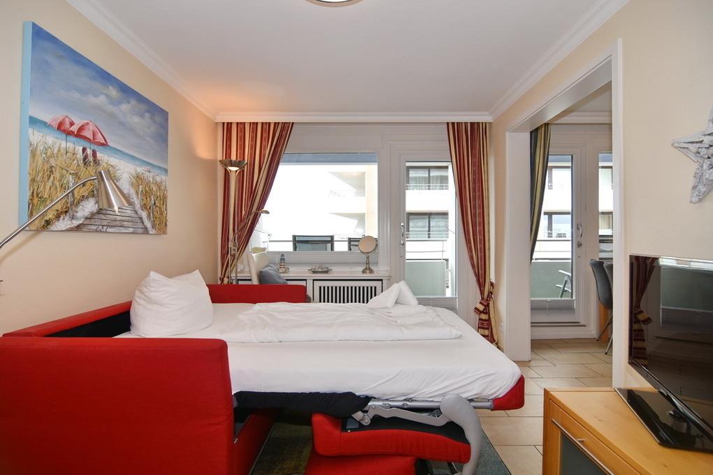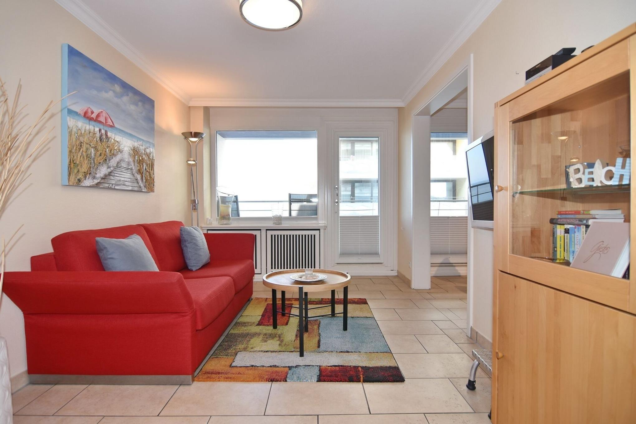 Komfortable 2-Zimmer-Ferienwohnung mit Meerblick und Westbalkon in Westerland, ideal für entspannte Tage an der Nordsee.