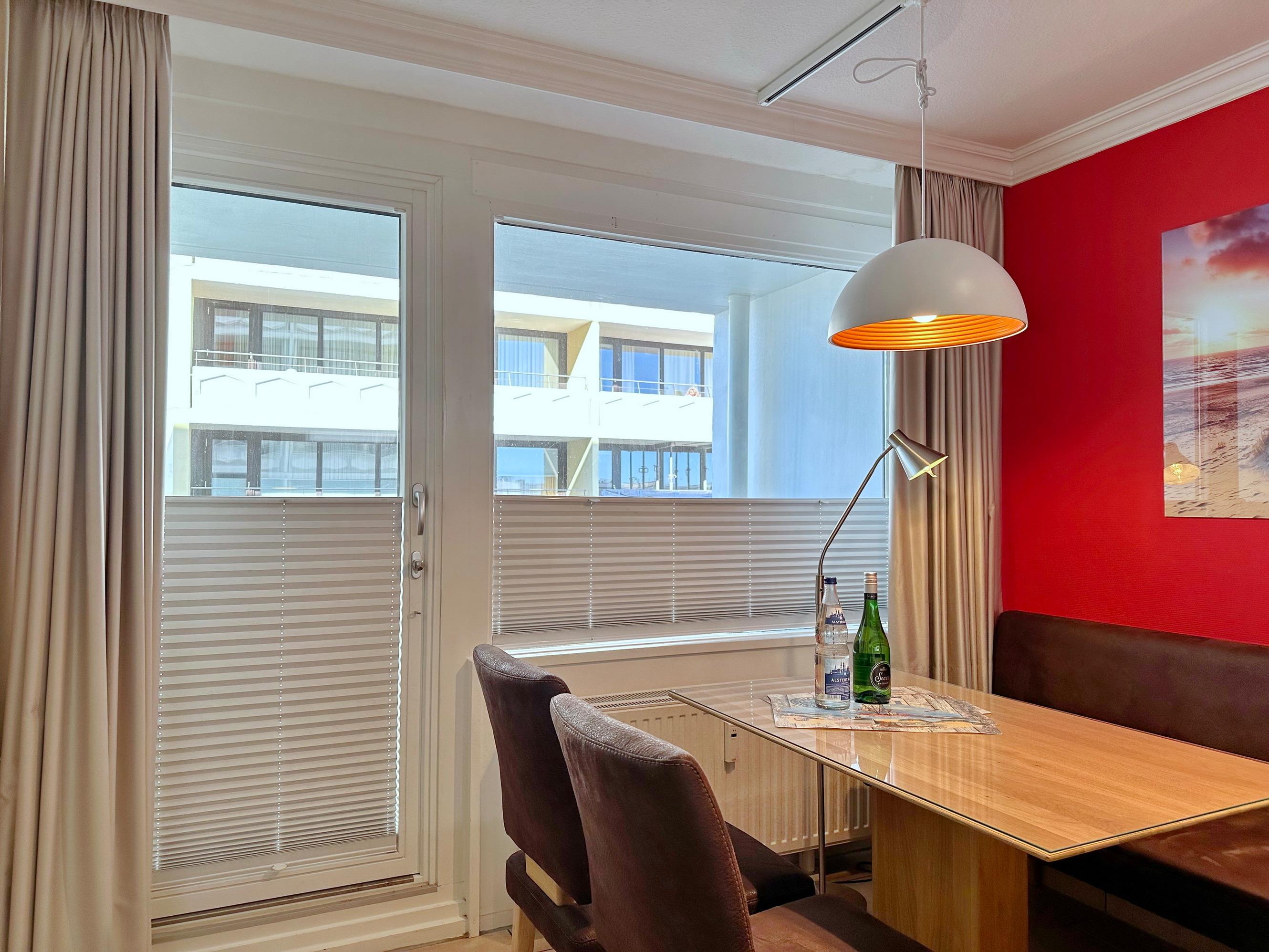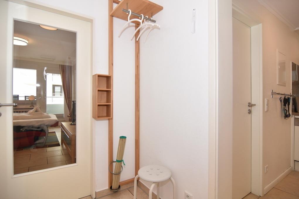 2-Zimmer-Wohnung im Haus am Meer mit Westbalkon und Meeresblick, ca. 50qm, 4. OG zur Seeseite - Nichtraucher-Whg.! Wohnzimmer mit Schlafcouch, Kleiderschrank, Flat-TV und Westbalkon. Von hier aus gelangt man zum Essplatz für 4 Personen - dieser ist dem separaten Schlafzimmer mit Doppelbett, Einbauschrank und Flat-TV vorgelagert. Der Essplatz besteht aus einer großzügigen Eckbank und 2 Stühlen, die wahlweise auch zum Sofa gestellt werden können. Im Flurbereich befindet sich die offene Küche mit Geschirrspüler, Ceranherd mit 4 Kochfeldern und Mikrowelle. Der Kühlschrank verfügt über ein Gefrierfach. Duschbad / WC. PKW-Stellplatz/Garage kann kostenpflichtig gebucht werden. Bettwäsche und Handtücher sind zur Anreise aufgezogen. Tierhaltung ist in der Wohnung nicht gestattet. Beginnend vom 15.10.2025 bis 5.4.2026 (Ostern) findet die Fassandensanierung der Landseite (Osten) sowie des Südgiebels statt. Mit Baulärm ist in dieser Zeit zu rechnen.