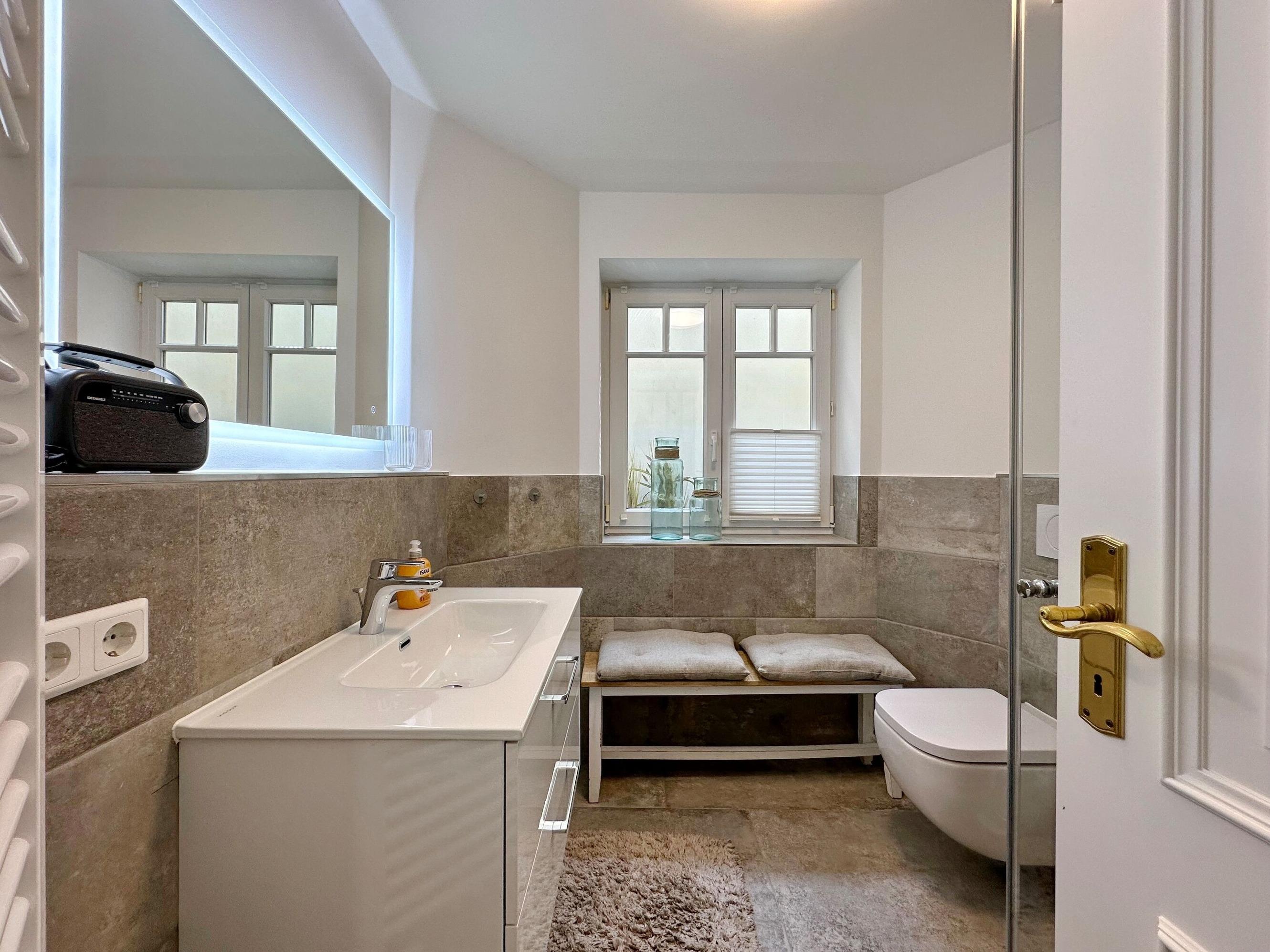 Hübsches 4-Zimmer- Apartment EG/UG im Haus "Hopfengarten", ca. 67m², Nichtraucher. Gefliester Wohnraum mit Couch und Sessel, Esstisch, Radio, TV, Ost- und Südterrasse mit Strandkorb (Apr.-Okt.), offene Küche mit Geschirrspüler, Mikrowelle und Backofen, kleiner Esstresen, Duschbad/WC. UG: Schlafzimmer mit Doppelbett (180x200), Schlafzimmer mit Einzelbett (140x200), Schlafzimmer mit Einzelbett (90x200) und TV, Duschbad/WC. PKW-Stellplatz Nr. 7. Tierhaltung ist gestattet, bitte anmelden (Kampfhunde verboten). Bettwäsche und Handtücher sind zur Anreise aufgezogen.