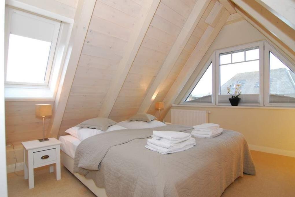 Im „Ilse-Marie 5“ wohnen Sie in einer schönen 2-Zimmer-Ferienwohnung, die sich in direkter Lage am Strandübergang befindet. Die Wohnung ist 56 m² groß und befindet sich im Obergeschoss und Dachgeschoss. In dem sonnigen Wohnzimmer gibt es eine Couchecke, einen Essplatz sowie eine integrierte Küche mit Geschirrspüler und Mikrowelle. Von hieraus gelangen Sie auf den sonnigen, windgeschützten Südbalkon mit Balkonmöbeln. Das Duschbad/WC, die Garderobe/Diele sowie Abstellmöglichkeiten für Koffer befinden sich ebenfalls auf dieser Ebene. Im Dachgeschoss befindet sich das großzügige Schlafzimmer mit einem Doppelbett, Kleiderschrank und einem Flatscreen. Ein Pkw-Stellplatz kann kostenlos gebucht werden. Bei der Anreise sind bereits Bettwäsche und Handtücher aufgezogen. Bitte beachten Sie, dass es sich um eine Nichtraucher-Wohnung handelt.