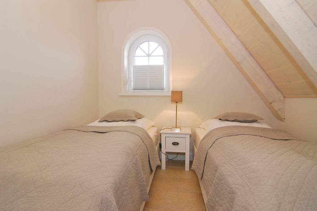 Die 3-Zimmer-Wohnung liegt in unmittelbarer Nähe zum Strandübergang und bietet eine Wohnfläche von ca. 60 m². Sie ist als Nichtraucher-Wohnung ausgewiesen und erstreckt sich über 3 Etagen. Das Erdgeschoss besteht aus einem Windfang und einer Diele. Im Obergeschoss befinden sich ein helles Wohnzimmer mit einer gemütlichen Couchecke, einem Essplatz, Flat-TV und einer integrierten Küche, die mit einem Geschirrspüler und einer Mikrowelle ausgestattet ist sowie ein Schlafzimmer mit zwei Einzelbetten und Duschbad/WC. Der Zugang zum Bad erfolgt durch das Schlafzimmer. Auf dem Westbalkon können Sie die Sonne genießen und es stehen Balkonmöbel zur Verfügung. Im Dachgeschoss befindet sich ein weiteres, offenes Schlafzimmer mit einem Doppelbett und einem Flatscreen-Fernseher. Hier gibt es ein separates WC mit Handwaschbecken. Ein kostenloser Parkplatz kann auf Anfrage gebucht werden. Bei Ankunft sind die Betten bezogen und Handtücher liegen bereit. .