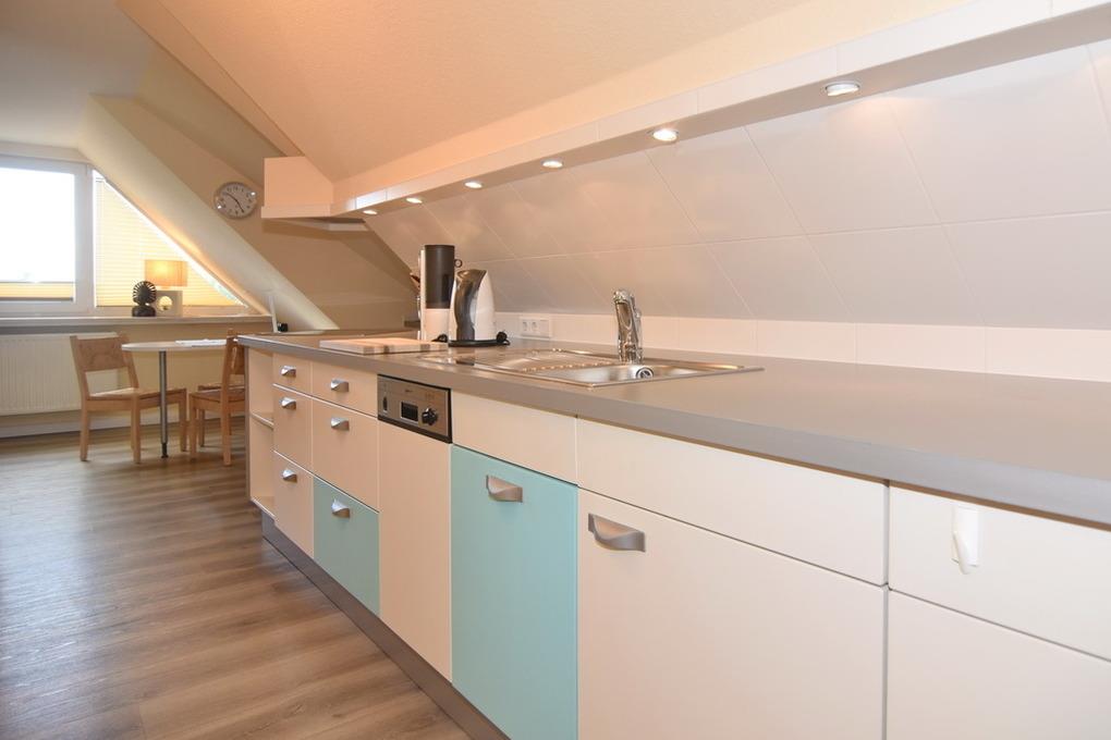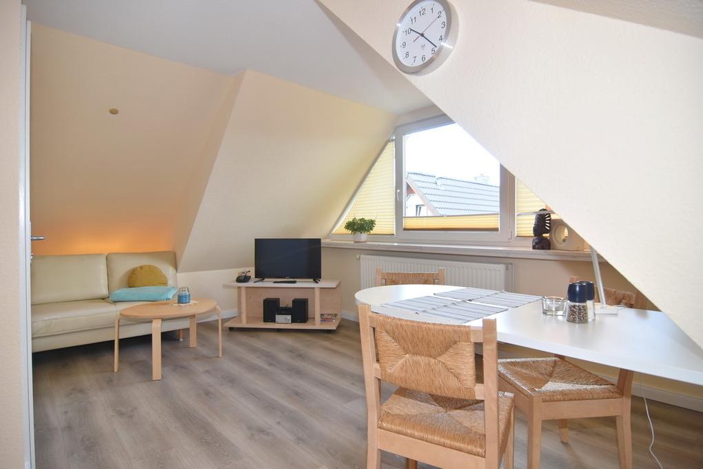 Gemütliche Dachgeschosswohnung in Westerland mit moderner Küche und Gartenplatz, ideal für erholsame Tage zu zweit.