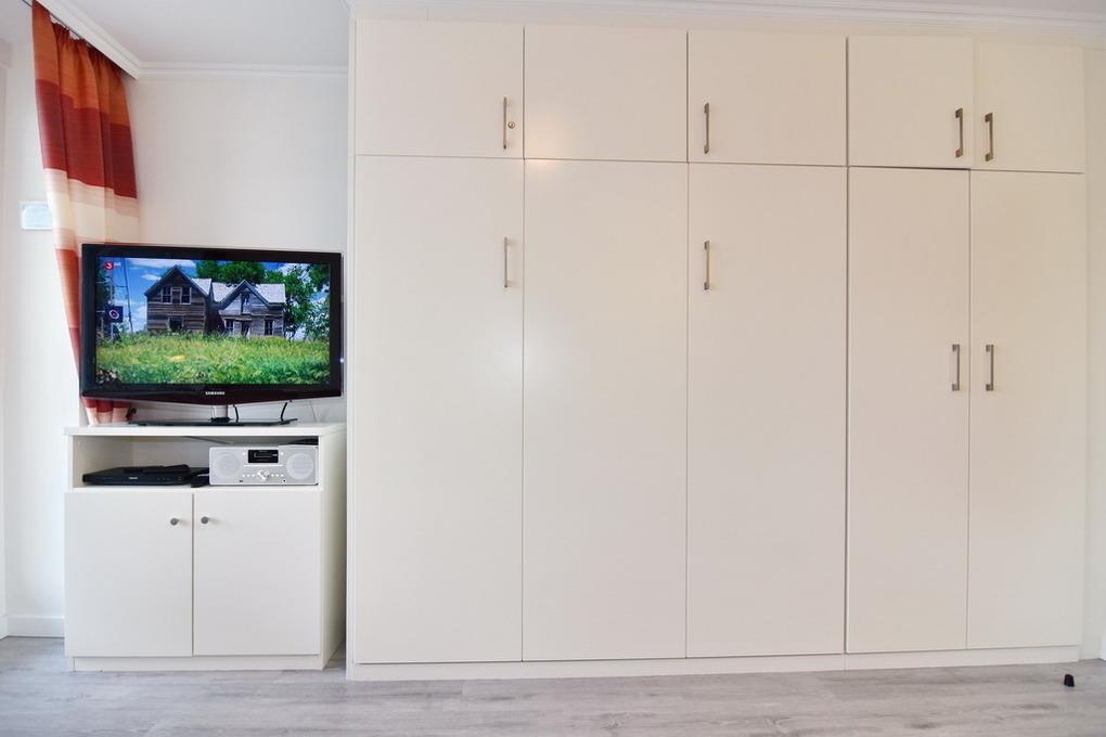 Strandnahe, helle und komfortable 1-Zimmer-Wohnung im 1. OG zur Landseite im Haus Metropol gelegen. Ca. 30 m². Der Wohn-/Schlafraum ist mit einem Doppelschrankbett, einer 2-Sitzer-Couch, dem Essplatz am Fenster sowie Flat-TV, Radio und WLAN (ohne Gewähr) ausgestattet. Der Balkon ist gen Osten ausgerichtet. Die moderne Küche ist mit einer Mikrowelle, einem Geschirrspüler und einem 2-Platten-Cerankochfeld ausgestattet. Helles Badezimmer mit Duschbad /WC, Kosmetikspiegel und Föhn.