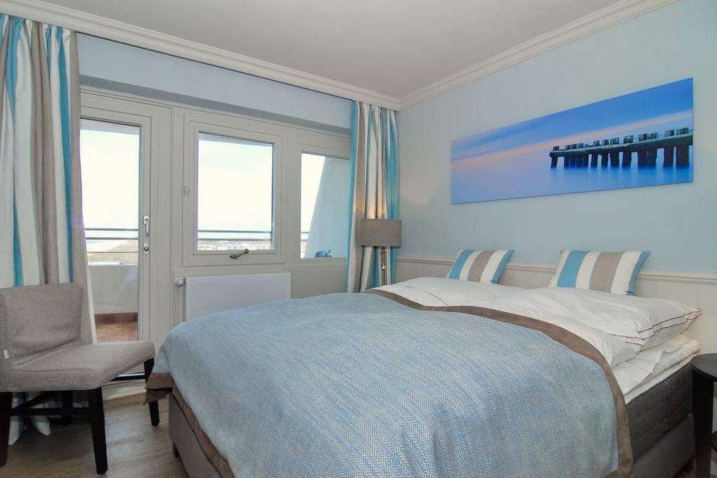 Exklusives 3-Zimmer-Apartment im Haus "Metropol" im 5.OG mit traumhaften Blick auf die Nordsee und über den Dünenkamm. Nichtraucher-Appartement! Wohnzimmer mit Sitzecke und Essplatz am Fenster mit Blick auf das Meer, Flat-TV mit Radio, W-Lan (ohne Gewähr), West- und Nordbalkon mit Balkonmöbeln, offene Küche mit Geschirrspüler und Mikrowelle/Backofen, Schlafzimmer mit Boxspringbett (180x200 ) und Flat-TV, Westbalkon und Duschbad ensuite, Schlafzimmer mit Boxspringbett (160x200 ), Flat-TV und Nordbalkon, Duschbad/WC. Das Wohnzimmer ist mit Designer-Fußboden ausgelegt. Tierhaltung ist nicht gestattet. Bettwäsche und Handtücher sind zur Anreise aufgezogen. Ein PKW-Stellplatz kann kostenpflichtig zugebucht werden.
