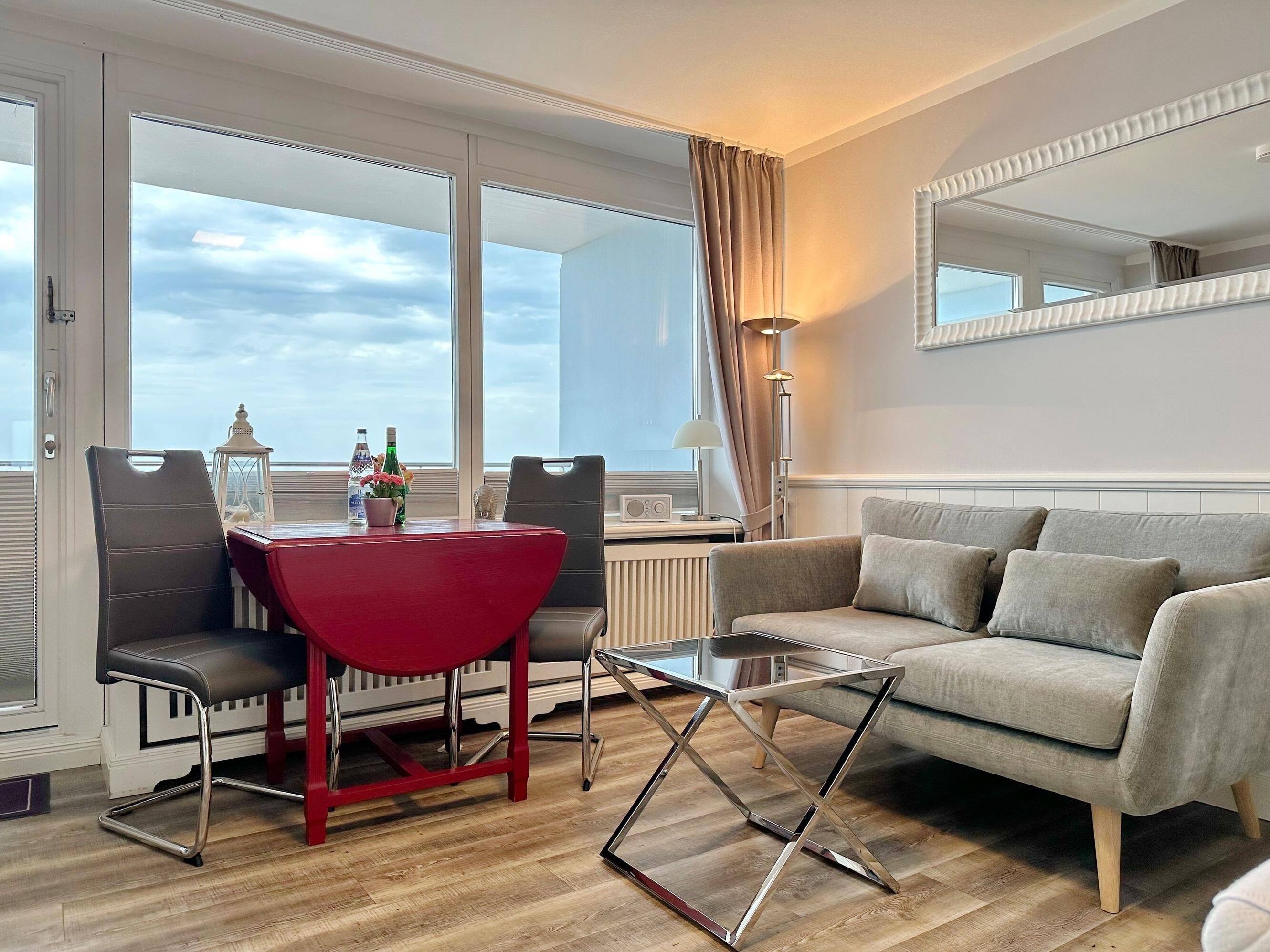 Moderne 1-Zimmer-Ferienwohnung in Westerland mit Meerblick und Balkon, ideal für einen erholsamen Urlaub zu zweit.