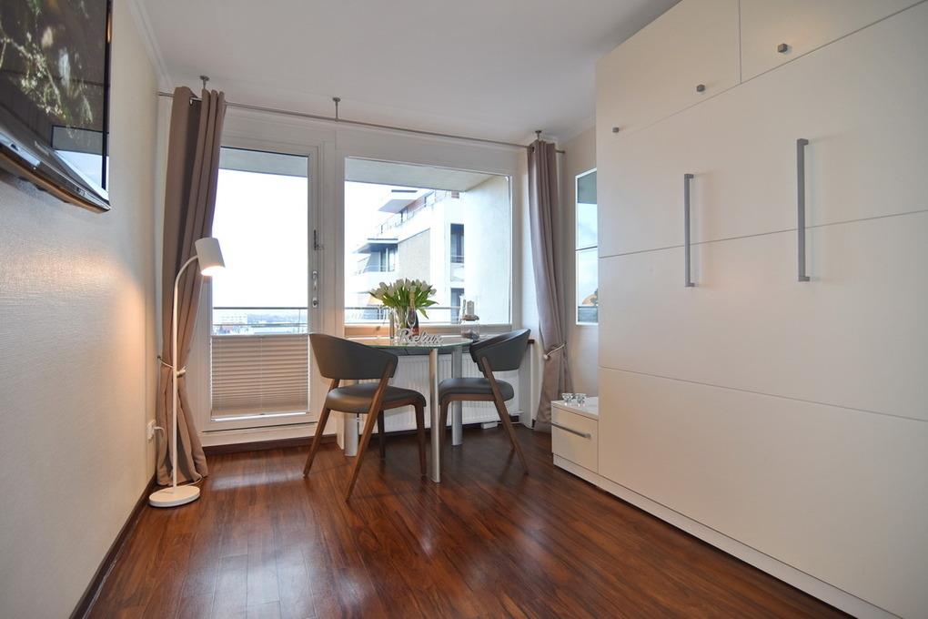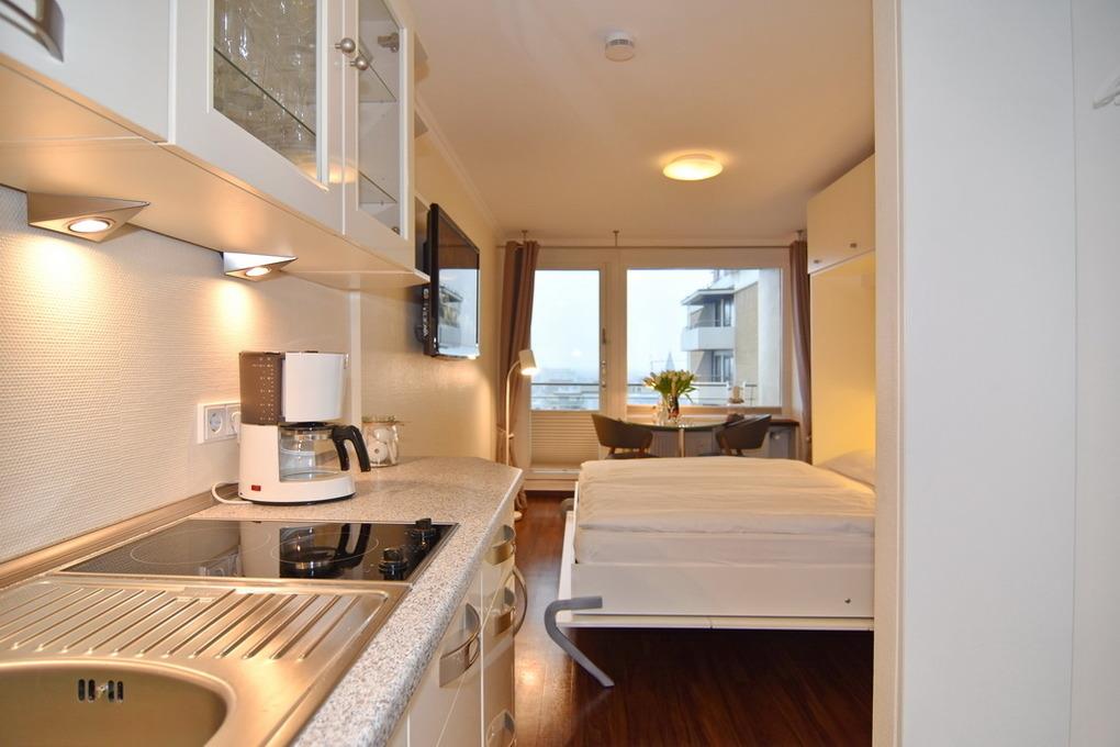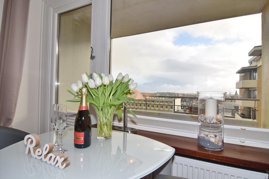 Exklusive 1-Zimmer-Ferienwohnung im 6. Stock mit tollem Weitblick über Westerland auf Sylt.