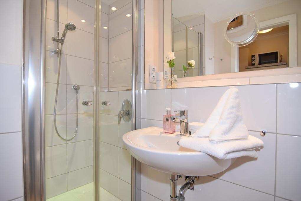 Exklusive 1-Zimmer-Ferienwohnung im 6.OG im Haus "Metropol" , ca. 23 qm, mit tollem Weitblick über die Insel. Nichtraucher-Wohnung. Helles Wohn- und Schlafzimmer mit Doppelschrankbett ( Matratzen 80x200 ), hochwertige Einbauküche mit Geschirrspüler und Mikrowelle, Essplatz am Fenster. Flachbild-TV und Radio. W-Lan (ohne Gewähr), Exklusives Duschbad/WC. Modern ausgestattet. Tierhaltung verboten. Bettwäsche und Handtücher sind zur Anreise aufgezogen. Ein PKW-Stellplatz kann kostenpflichtig zugebucht werden.