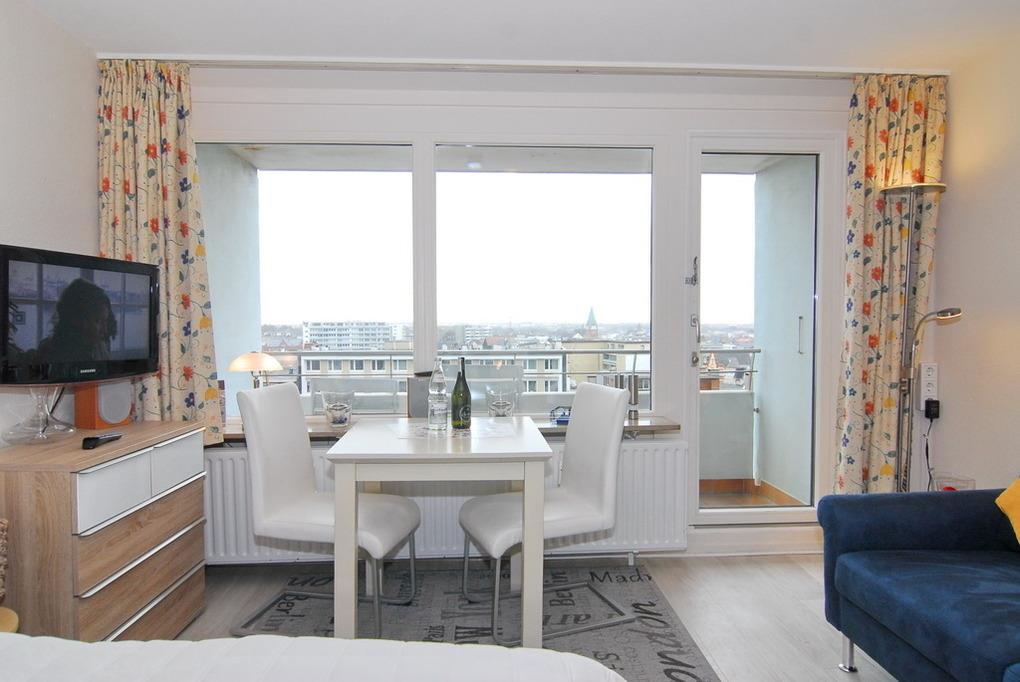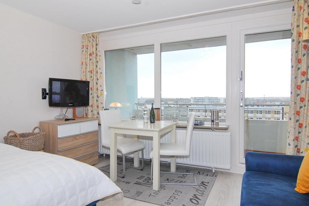 Gemütliche 1-Zimmer-Ferienwohnung mit Inselblick und Balkon im 6. Stock in Westerland auf Sylt.