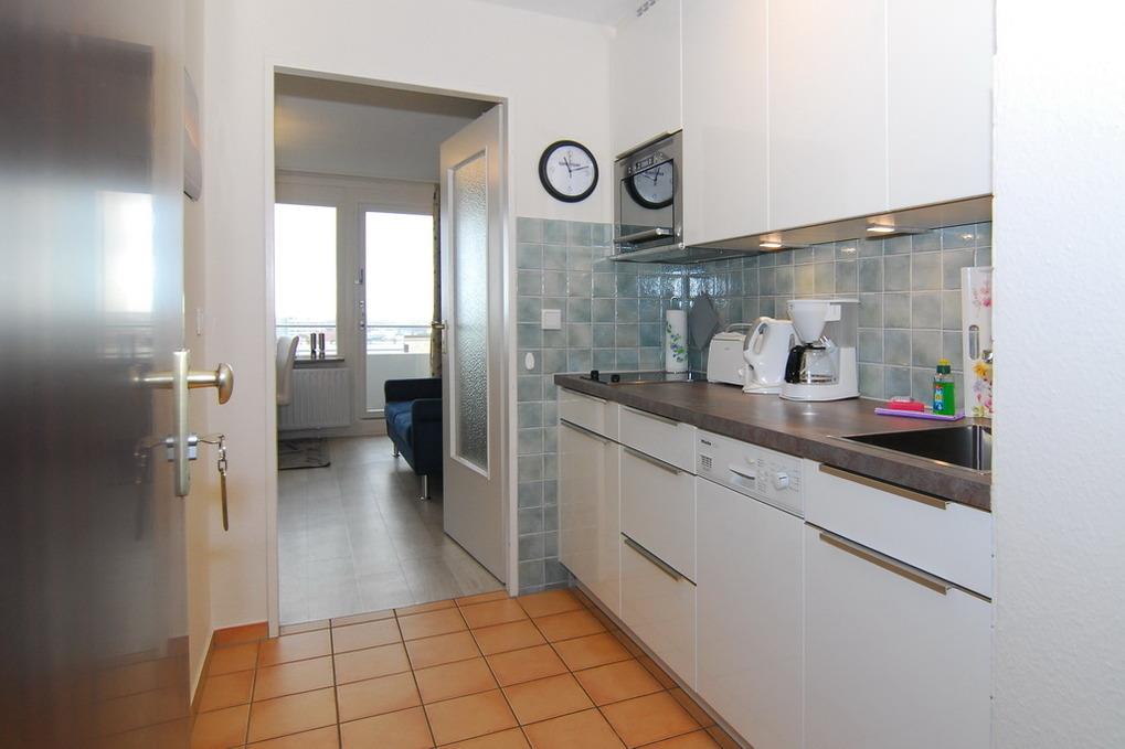 Hübsche 1-Zimmer-Ferienwohnung mit Inselweitblick im 6. OG, ca. 30 m², - Neues Kurzentrum "Haus Metropol"; Wohn-/ Schlafzimmer mit Doppelbett ( 160x200 ), Eßplatz am Fenster, Couch und Sessel, Flat-TV, Radio, W-Lan (ohne Gewähr), sonniger Ostbalkon mit Blick über die Insel. Schicke Küchenzeile mit Geschirrspüler, Duschbad/WC mit großer, begehbarer Dusche. Nichtraucherwohnung. Tierhaltung ist nicht gestattet. Bettwäsche und Handtücher sind zur Anreise aufgezogen. Ein PKW-Stellplatz kann kostenpflichtig zugebucht werden.