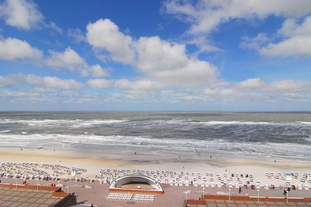 1-Zimmer-Ferienwohnung zur Meerseite im 7. OG des[nbsp][nbsp]Haus " Metropol", im 7. OG, ca. 25 m², Nichtraucher. Wohn-/ Schlafraum mit Westbalkon mit freiem Blick auf die Nordsee, Esstisch am Fenster, Couch und Einbauschrank, Doppelbett (140x200), Radio, Flat-TV, W-Lan (ohne Gewähr), offene Küchenzeile im Flurbereich mit Geschirrspüler, Duschbad/ WC. Das Appartement ist mit Design-Fußboden ausgelegt. Tierhaltung ist nicht gestattet. Bettwäsche und Handtücher sind zur Anreise aufgezogen. Ein PKW-Stellplatz kann kostenpflichtig zugebucht werden.