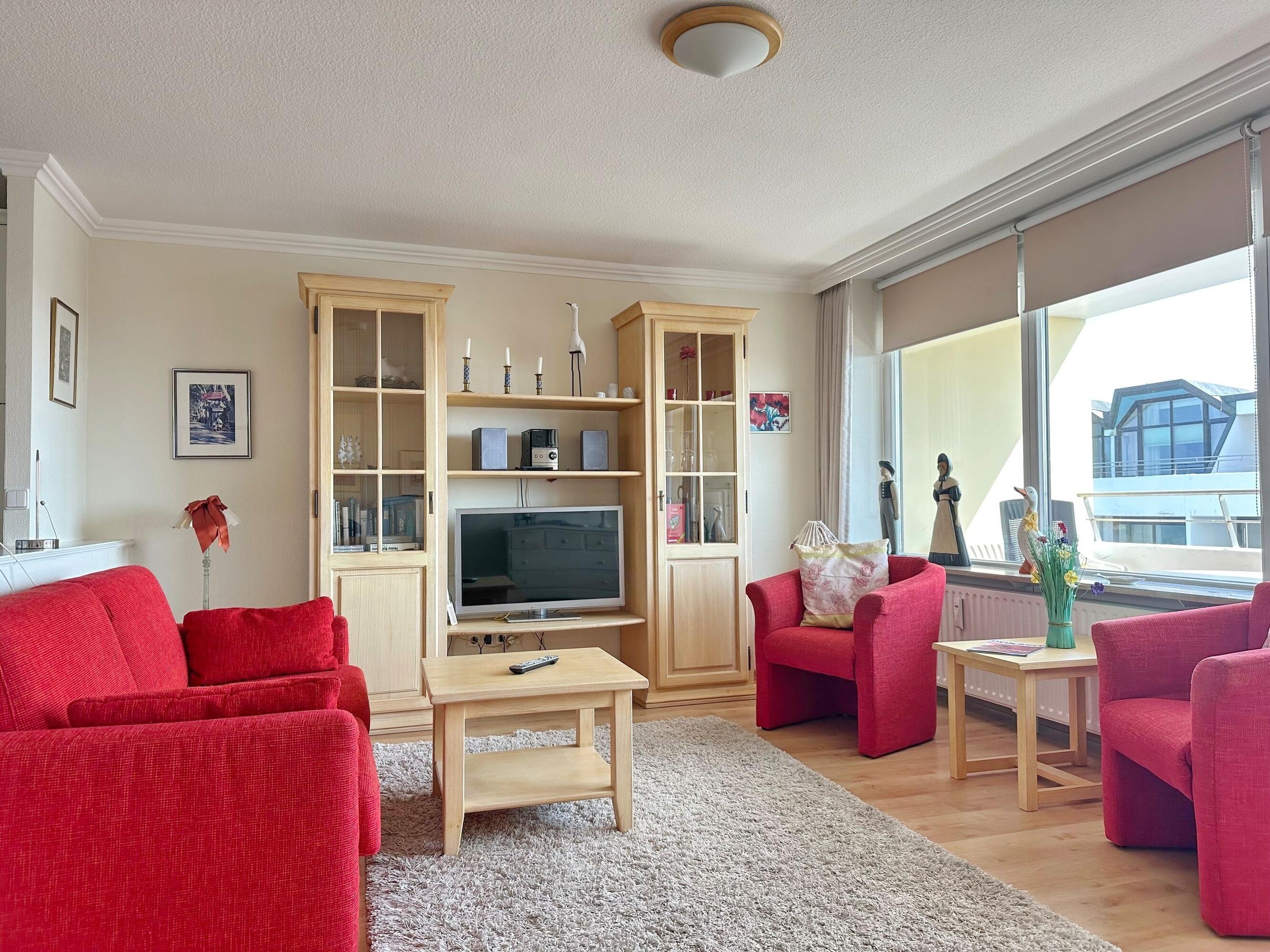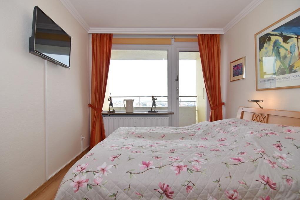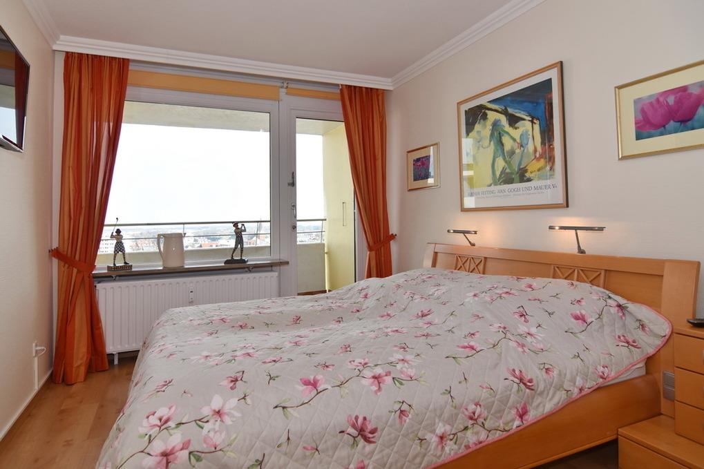 Schöne 2-Zimmer-Wohnung im 8. OG des Hauses Metropol. Genießen Sie die Morgensonne und den Weitblick über die Insel. Geräumiges, helles Wohnzimmer mit Schlafcouch und 2 Sesseln, Flat-TV, Musikanlage, W-Lan (ohne Gewähr), offene Küche mit Mikrowelle, Geschirrspüler und 4-Platten-Herd. Essplatz und möblierter Ostbalkon. Separates Schlafzimmer mit Doppelbett (2x80x200), Flat-TV und Einbauschrank sowie eigenem Ostbalkon. Großes Duschbad/WC. Vom Wohnzimmer und vom Schlafzimmer aus begehbar. Nichtraucher-Appartement, keine Tierhaltung gestattet. Bettwäsche und Handtücher sind zur Anreise aufgezogen. PKW-Stellplatz/Garage kann kostenpflichtig gebucht werden.