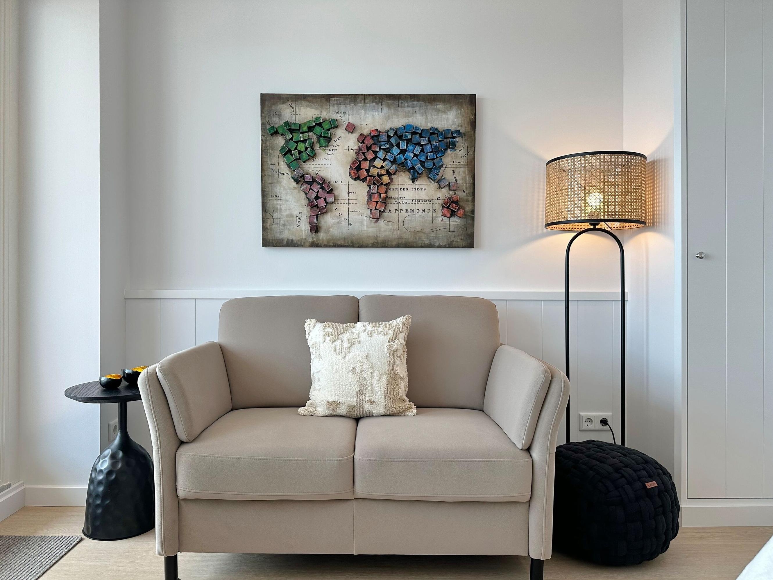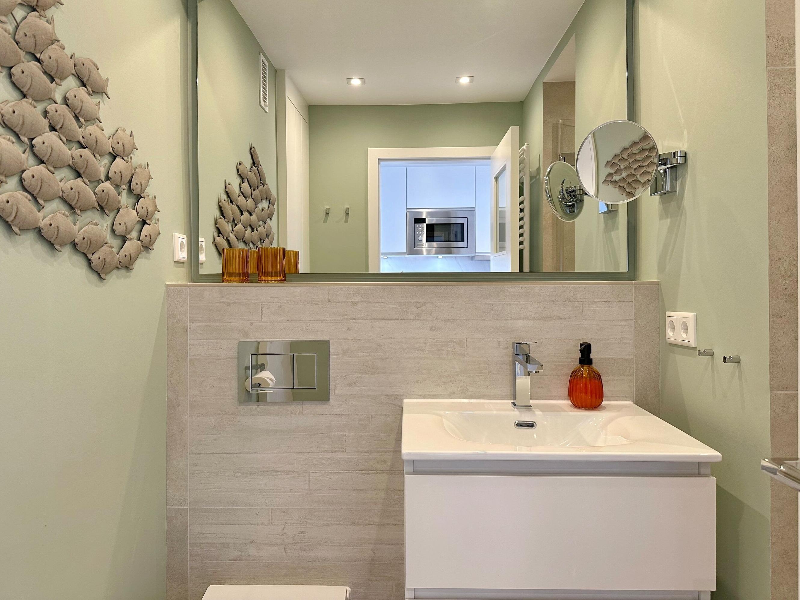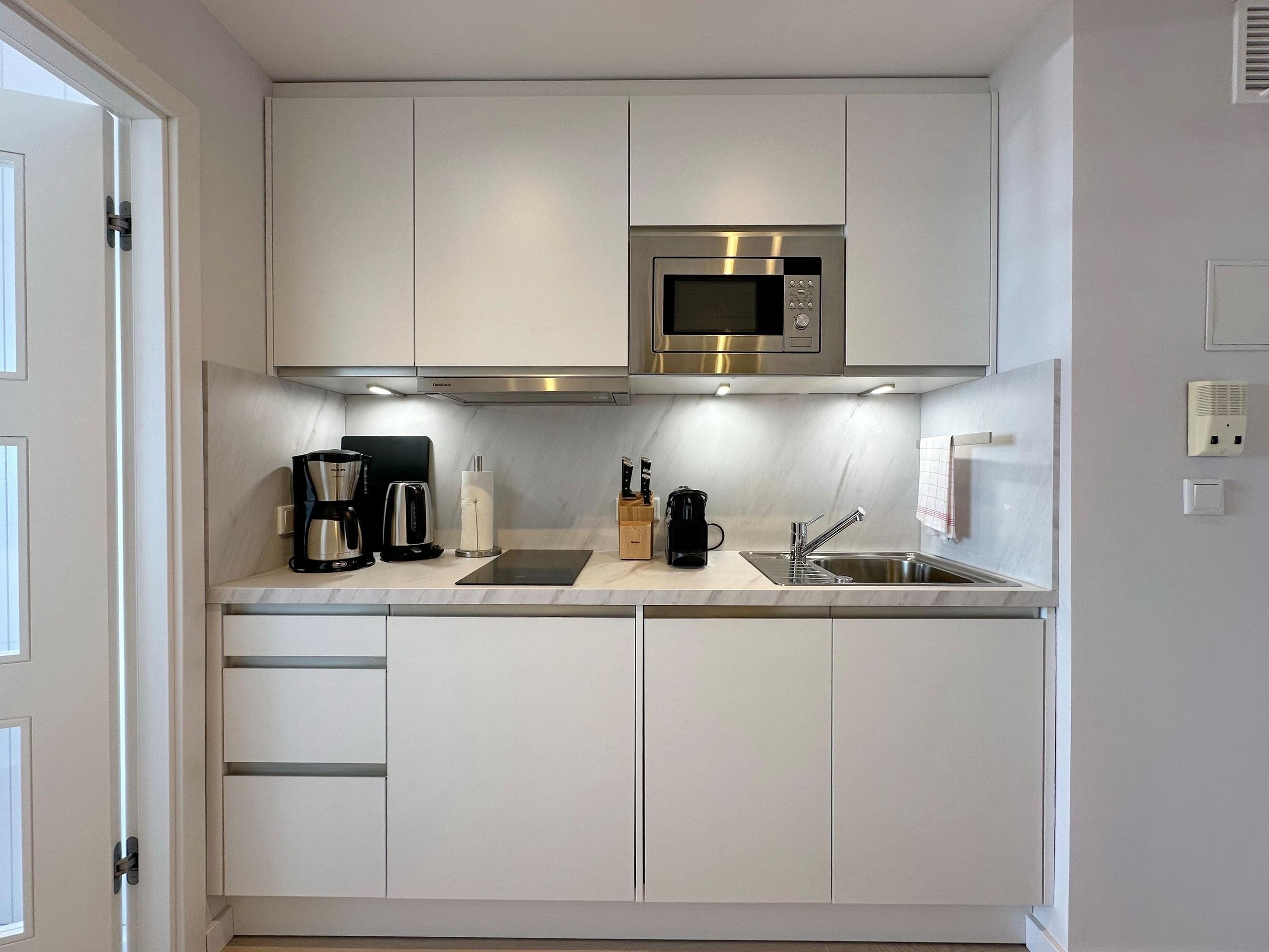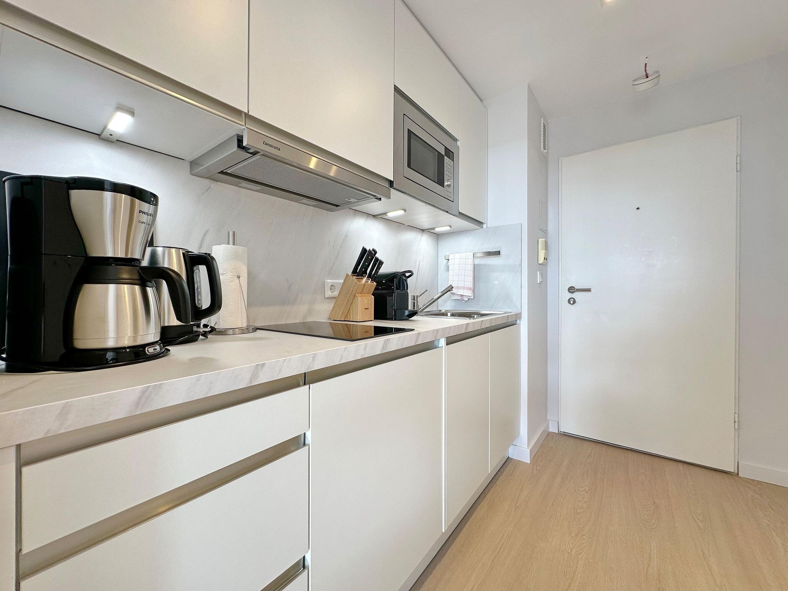 In erster Strandlage finden Sie im 9. Stockwerk des Haus "Metropol" dieses bezaubernde, in 2025 aufwendig gestaltete, ca. 30 m² große 1-Zimmer-Appartement für max. 2 Personen. Ein heller Wohn-Schlafraum mit einem ganz besonderen Essplatz vor dem großen Panoramafenster, ein bequemes Polsterbett (160 x 200), eine gemütliche Couch, Flat-TV, Radio und W'lan (ohne Gewähr) sorgen für behagliche Stunden. Eine weiße Küche mit 2-Platten Ceranfeld, Mikrowelle mit Grillfunktion und Geschirrspüler und ein neues Duschbad/WC mit großzügiger Dusche komplettieren diese gut ausgestattete Einheit. Es ist ein kuscheliges und gut durchdachtes Nest in perfekt abgestimmtem Design. Dazu ein großer, windgeschützter Balkon mit bequemen Balkonmöbeln und herrlichem Panoramablick - Ihr Lieblingsplatz. Bettwäsche und Handtücher sind zur Anreise aufgezogen. Ein PKW-Stellplatz kann kostenpflichtig zugebucht werden.
