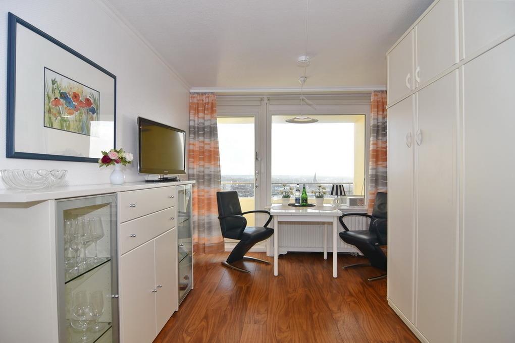 Moderne 1-Zimmer-Ferienwohnung mit Ostbalkon und Inselblick im 10. Stock in Westerland.