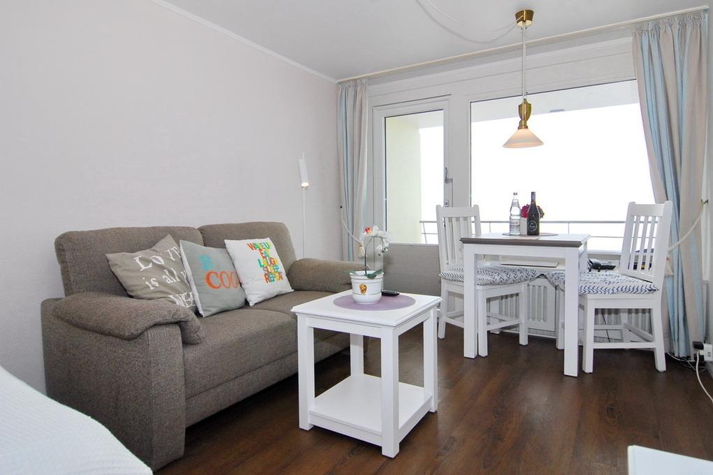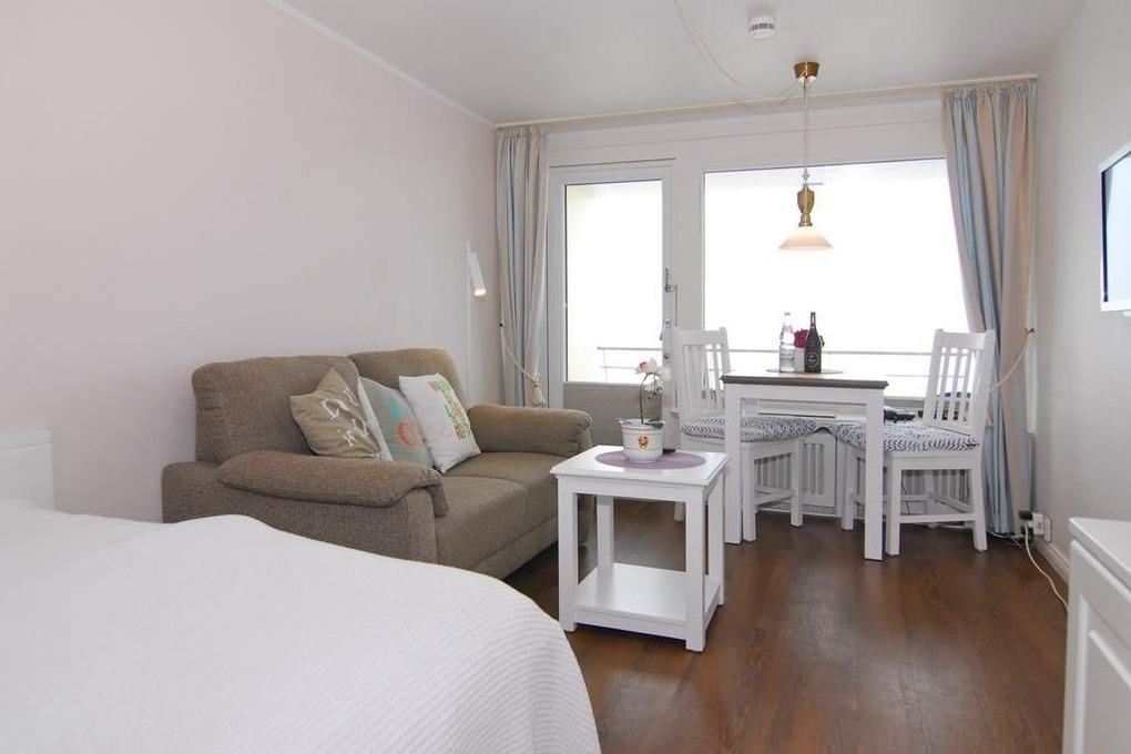 Moderne 1-Zimmer-Ferienwohnung mit Meerblick und Balkon in Westerland, ideal für 2 Personen.