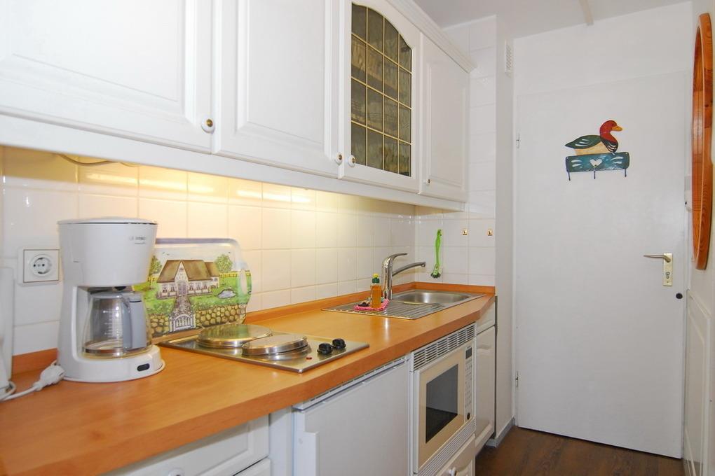 1-Zimmer-Ferienwohnung, ca. 25 qm, im 11.OG des Hauses Metropol zur Seeseite. Die Nichtraucher-Wohnung hat ein Wohn-/ Schlafraum mit Westbalkon und freiem Blick auf das Meer, Eßtisch am Fenster, Couch und Einbauschrank, Doppelbett (ca. 140x200, 1 Matratze), Kabel-TV, Radio, W-Lan, Küchenzeile im Flurbereich mit Mikrowelle, Duschbad/WC. Rauchen und Tierhaltung ist nicht gestattet! Bettwäsche und Handtücher sind zur Anreise aufgezogen. Ein PKW-Stellplatz kann kostenpflichtig zugebucht werden .Achtung: Sitz- und Essecke befinden sich auf Podest. 1 Stufe vorhanden.