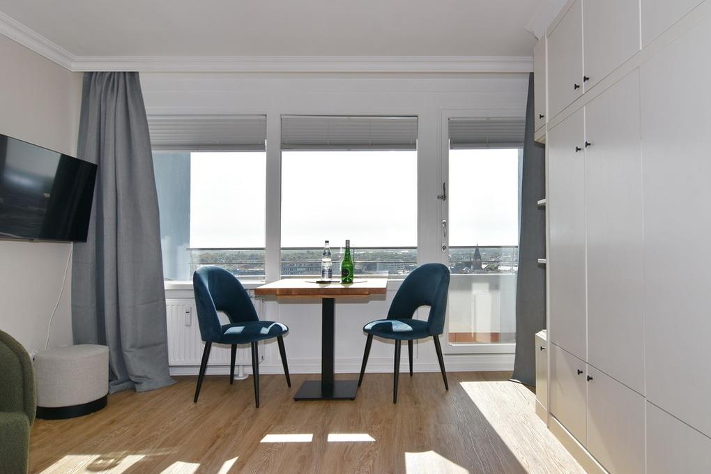 Modernes 1-Zimmer-Apartment im 11. OG mit Blick über Westerland und das Wattenmeer.