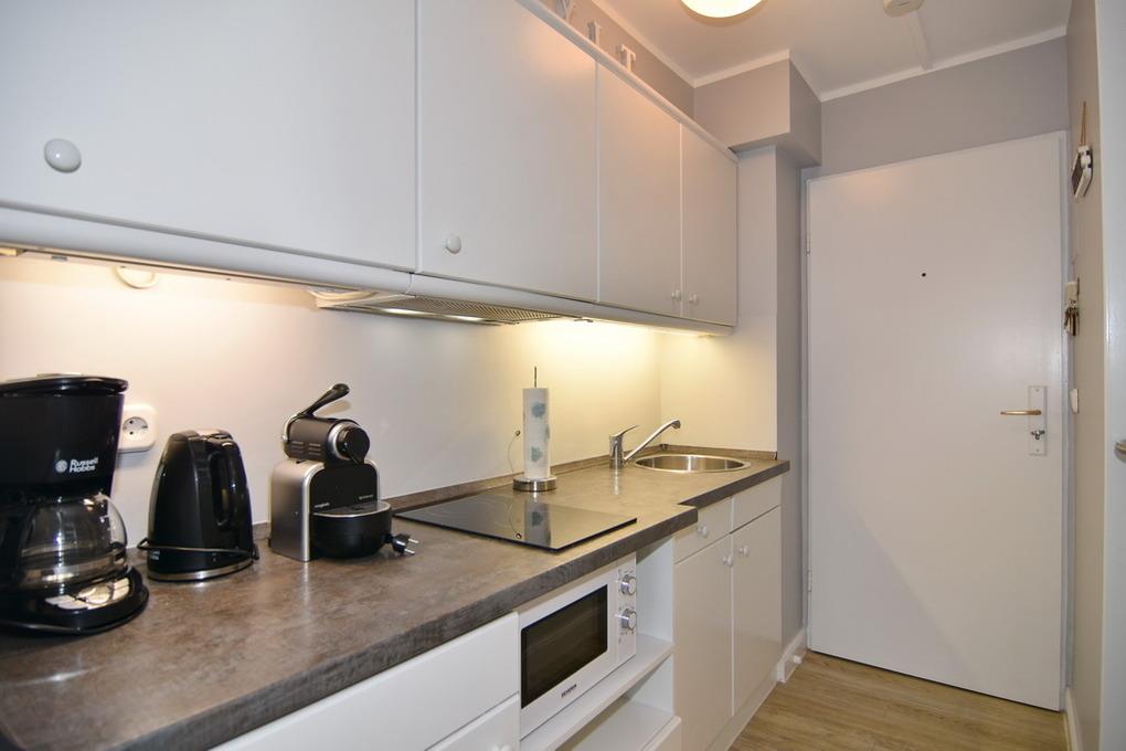 Nichtraucher-Whg.! 1 Zimmer-Ferienwohnung, 12. OG, ca. 25 m², Neues Kurzentrum, " Haus Metropol" Wohn-/ Schlafraum mit 2 Einzelschrankbetten (2x90x190), Zwei-Sitzer-Sofa, Sessel, abklappbarer Esstisch an der Seite, Kabel-TV, Radio, WLAN (ohne Gewähr),[nbsp][nbsp]Westbalkon mit herrlichem Meeresblick, Küchenzeile im Flurbereich mit Mikrowelle (Hauptschalter Ceranfeld oben rechts), Duschbad/WC. Tierhaltung ist nicht gestattet. Bettwäsche und Handtücher sind zur Anreise aufgezogen. Ein PKW-Stellplatz kann kostenpflichtig zugebucht werden.