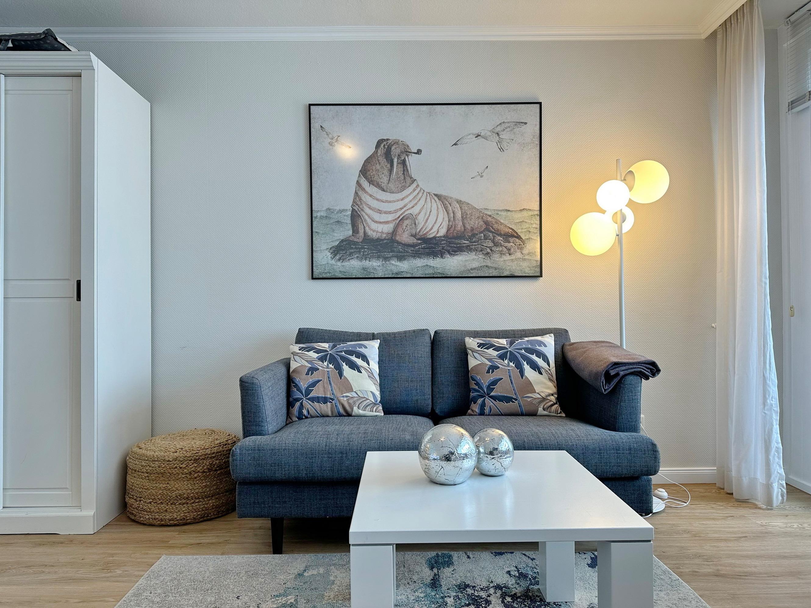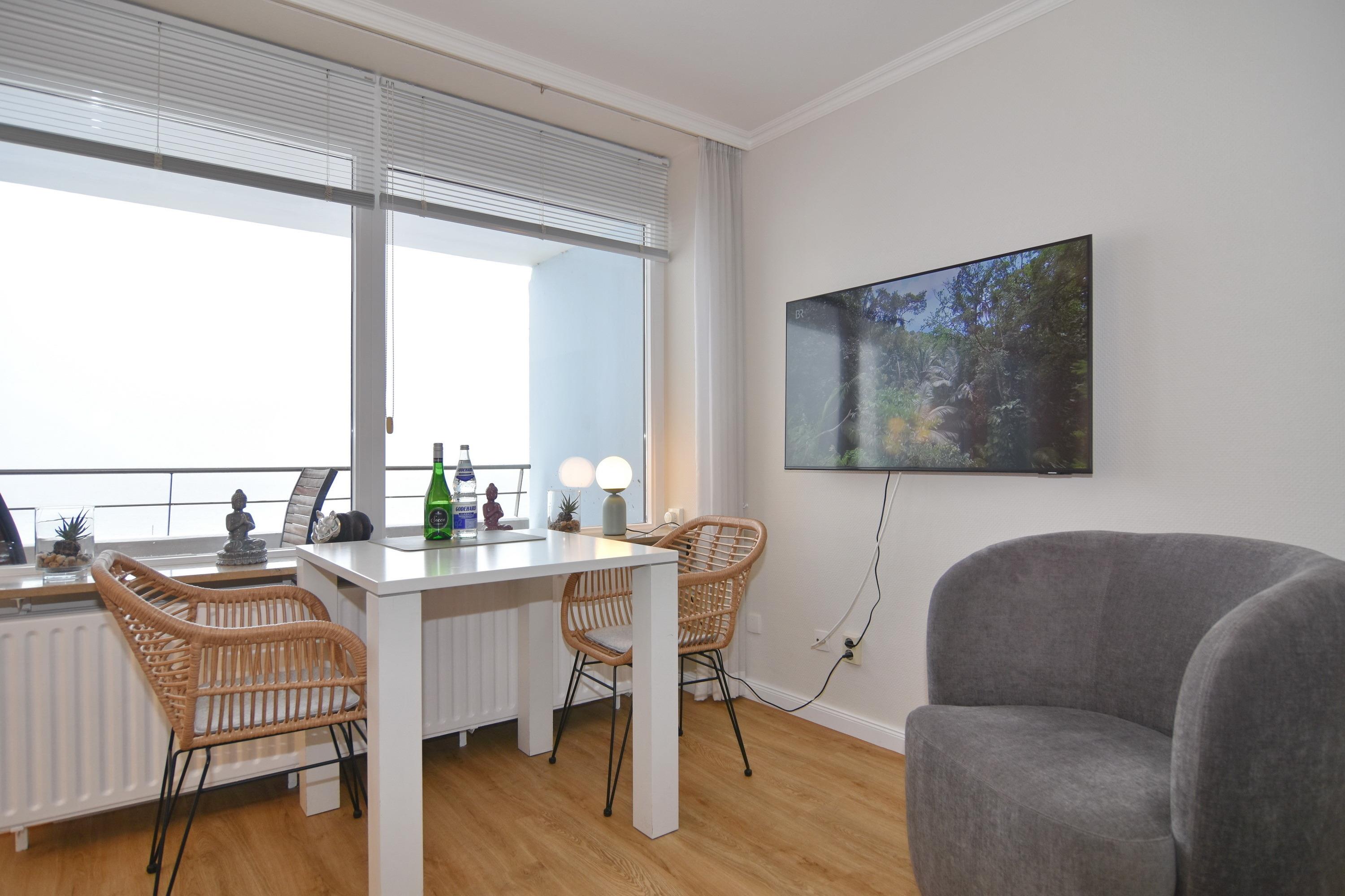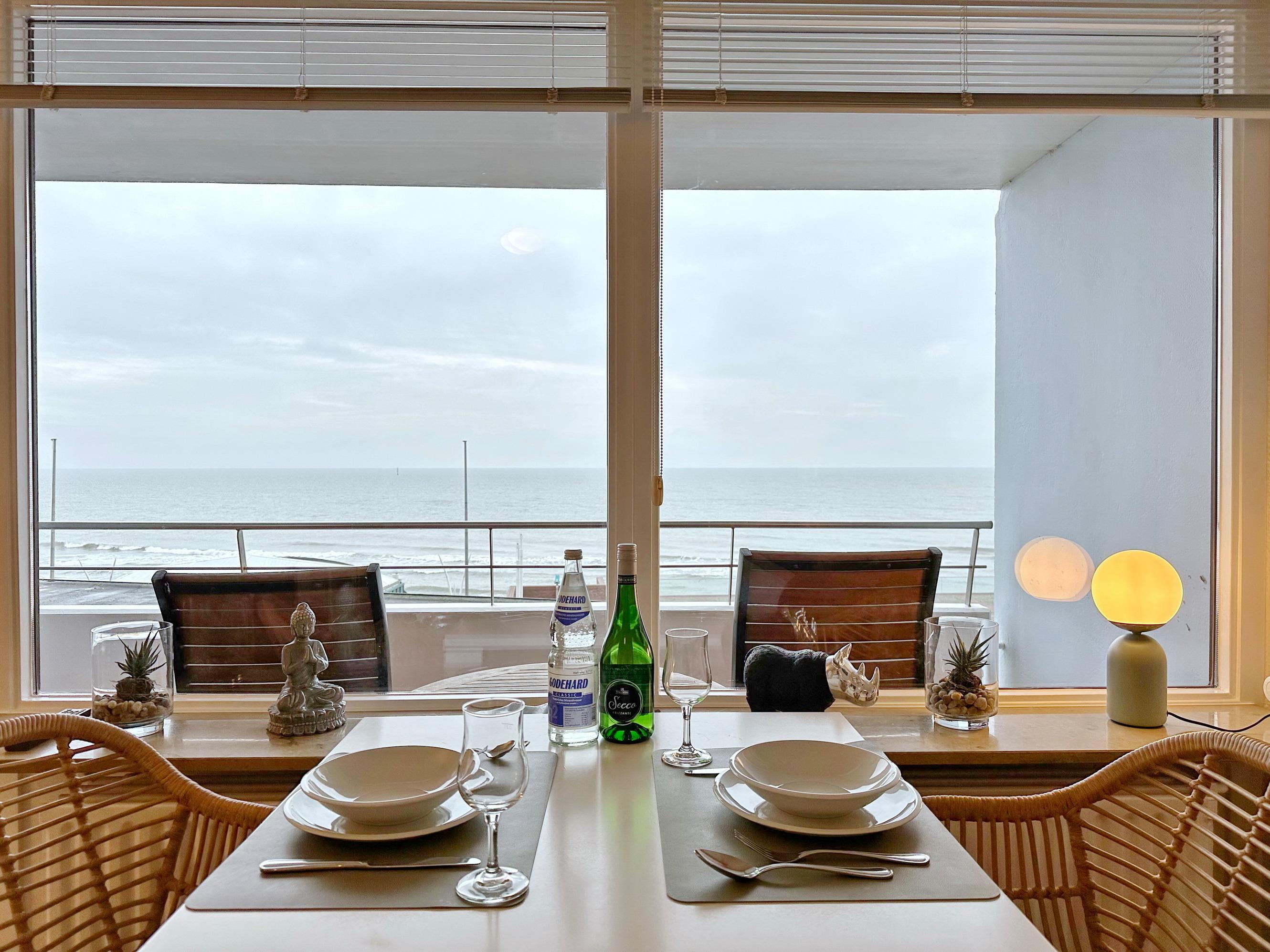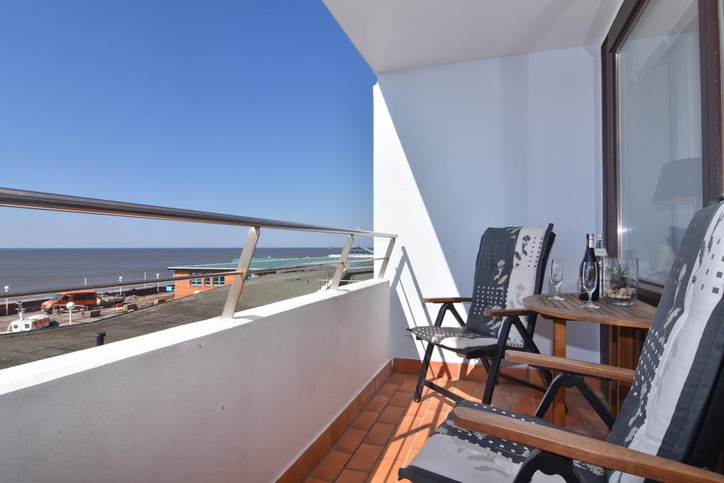 Charmante Ferienwohnung mit Westbalkon und freiem Meerblick in Westerland, ideal für einen erholsamen Urlaub zu zweit.