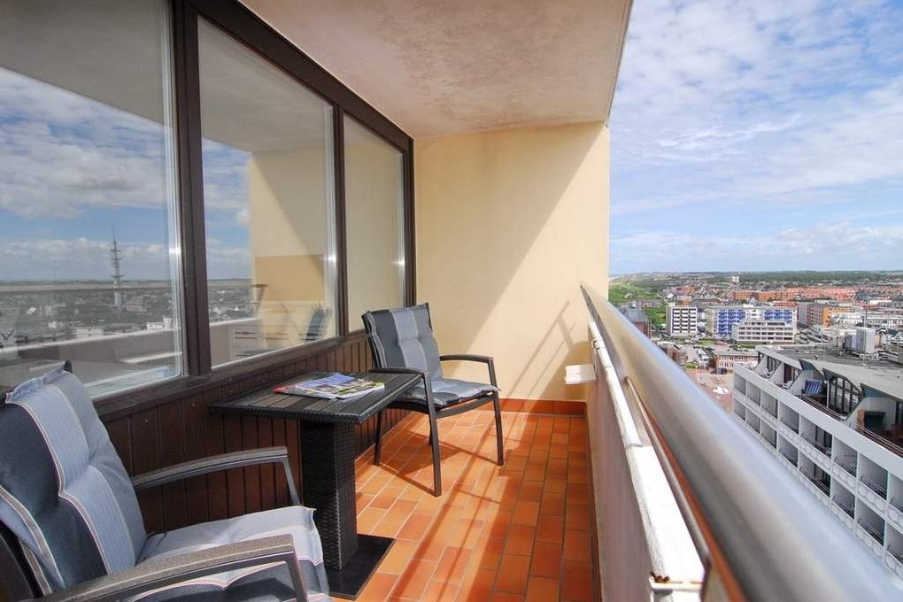 Hochwertige 2-Zimmer-Wohnung im 12. OG des Hauses Metropol. Genießen Sie den traumhaften Blick über die Insel bis hin zum Wattenmeer. Wohnzimmer mit offener Küche, Geschirrspüler, Backofen/Mikrowelle, Flat-TV, WLAN (ohne Gewähr), Essplatz und Sitzecke für 3 Personen, 2-Sitzer-Sofa und einem ausziehbaren Schlafsessel. Separates Schlafzimmer mit Doppelbett (2x90x200), Verdunklungsplissees und Einbauschränken und eigenem möblierten Ostbalkon, großes Duschbad mit Dampfsaunakabine, WC und Bidet. Es handelt sich um eine Nichtraucher-Wohnung, Tierhaltung ist nicht gestattet. Bettwäsche und Handtücher sind zur Anreise aufgezogen. PKW-Stellplatz/Garage kann kostenpflichtig zugebucht werden.
