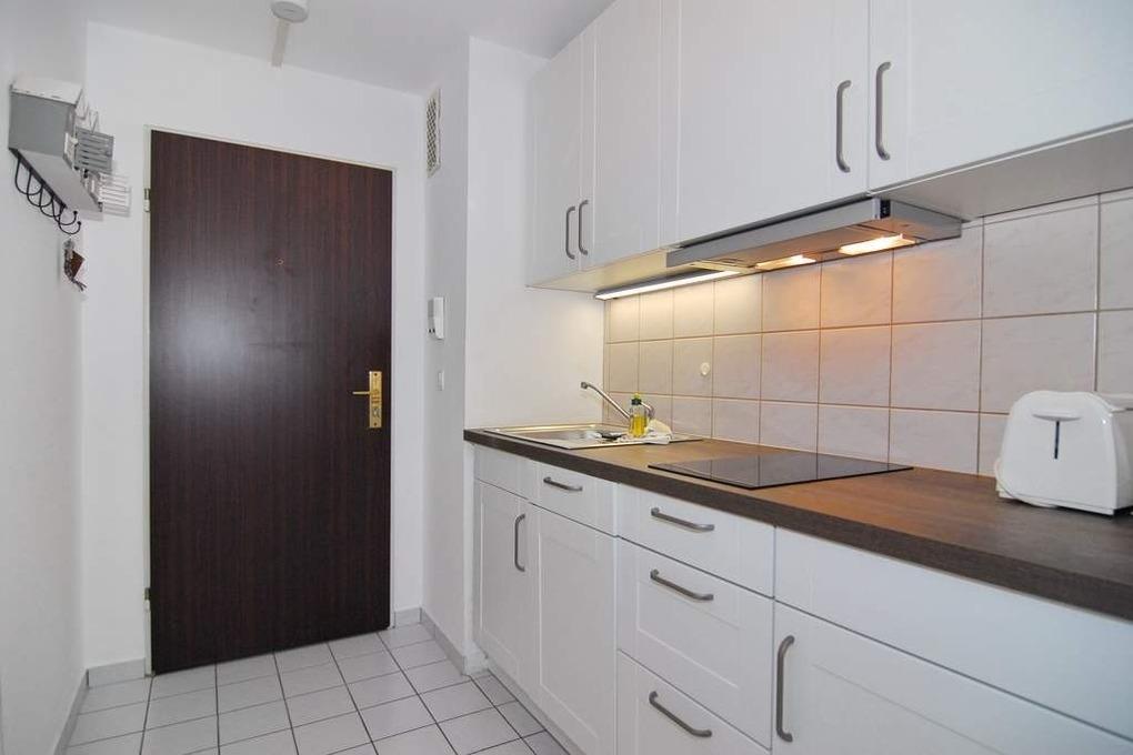 Moderne 1-Zimmer-Ferienwohnung im "Haus Metropol". Ca. 34m² im 3. OG mit Westbalkon und freiem Meeresblick. Helles Wohn-/ Schlafzimmer mit Doppelbett (2x80x200), Eßplatz am Fenster, 2-Sitzer-Couch, Flat-TV/Radio, W-Lan (ohne Gewähr), Balkon mit Balkonmöbeln und herrlichem Meeresblick, moderne Küchenzeile im Flur mit Geschirrspüler, Duschbad/WC. Das Apartment ist gefliest und für Nichtraucher und ohne Tierhaltung ausgewiesen. Bettwäsche und Handtücher sind zur Anreise aufgezogen. Ein PKW-Stellplatz kann kostenpflichtig zugebucht werden.
