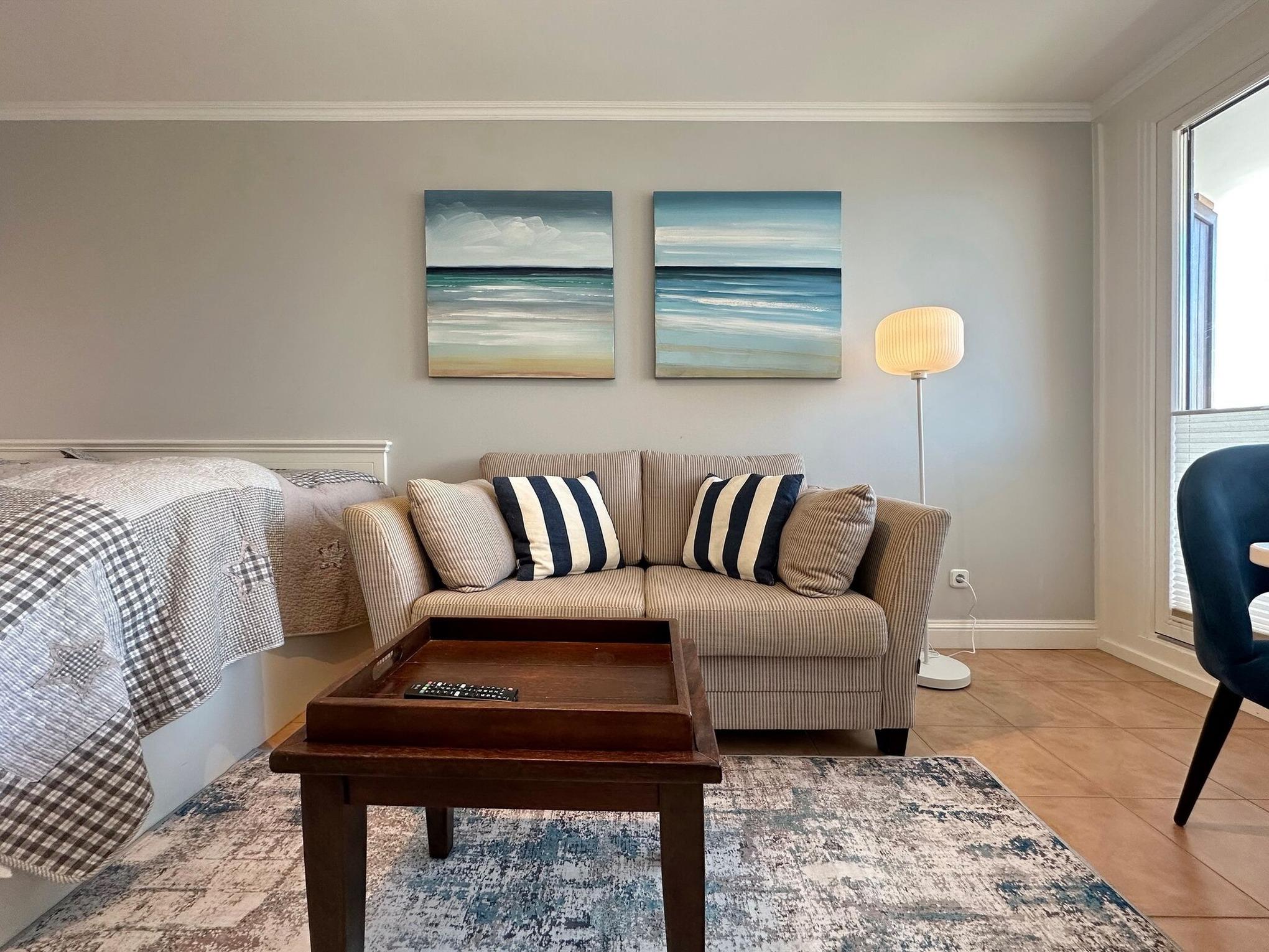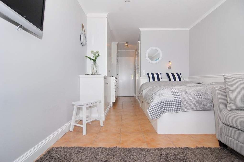 Exklusive 1-Zimmer-Ferienwohnung mit freiem Seeblick im 3. Obergeschoß des Haus "Metropol". Ca. 25m². Hübsches Wohn- und Schlafzimmer mit erhöhtem Doppelbett (1,40x2m). Essplatz für 2 Personen am Fenster. 2-Sitzer-Sofa. Flachbild-TV, Radio, W-Lan (ohne Gewähr). Hübsche Küche im Landhausstil mit Geschirrspüler, Mikrowelle und Cerankochfeld. Großer Kühlschrank mit Gefrierfach. Schickes Duschbad/WC. Die Wohnung ist komplett gefliest. Nichtraucherwohnung. Tierhaltung ist nicht gestattet. Bettwäsche und Handtücher sind zur Anreise aufgezogen. Ein PKW-Stellplatz kann kostenpflichtig zugebucht werden.