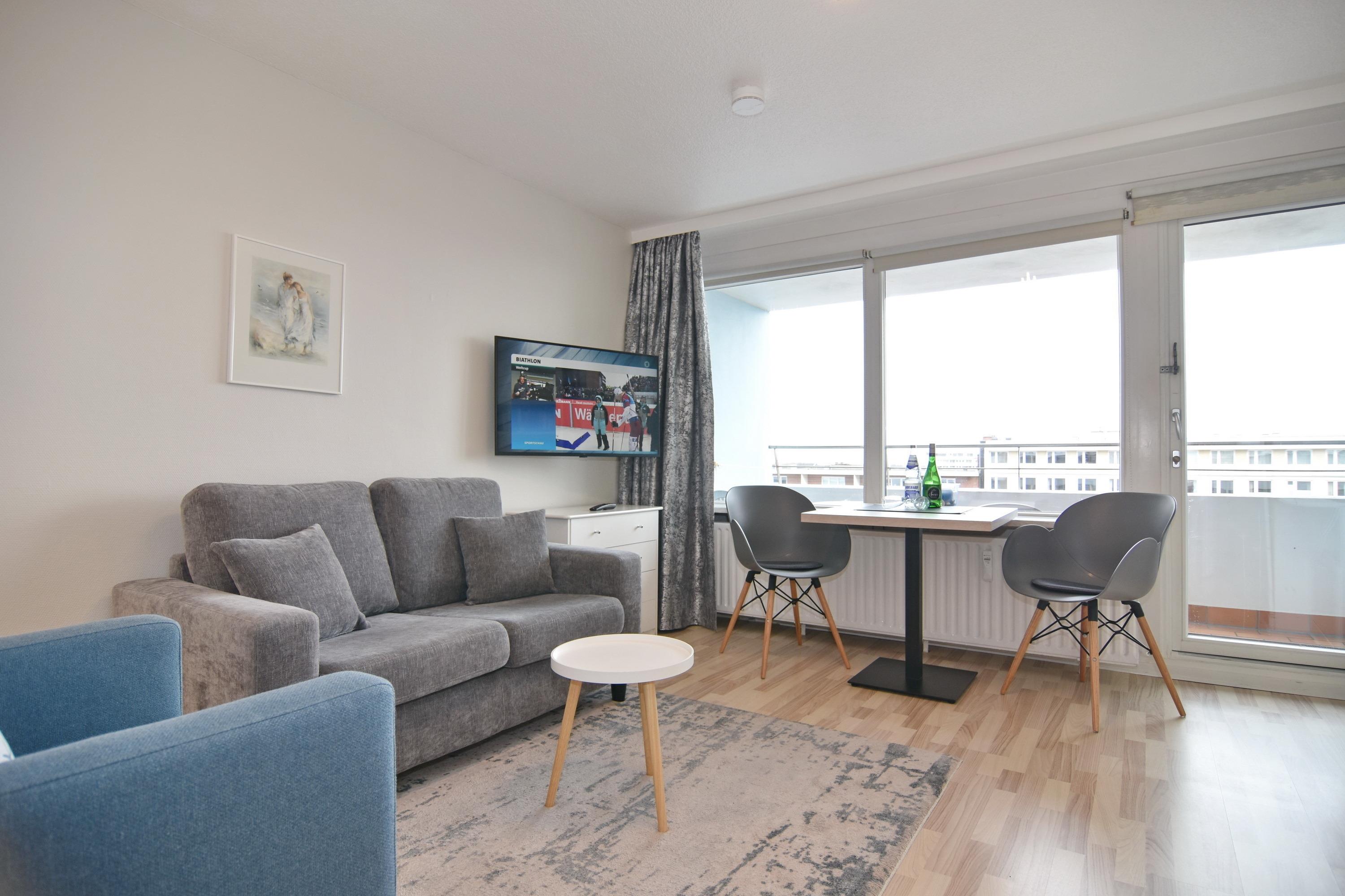 Helle 1-Zimmer-Ferienwohnung im 4. Stock nahe Strand in Westerland mit Balkon und moderner Ausstattung.