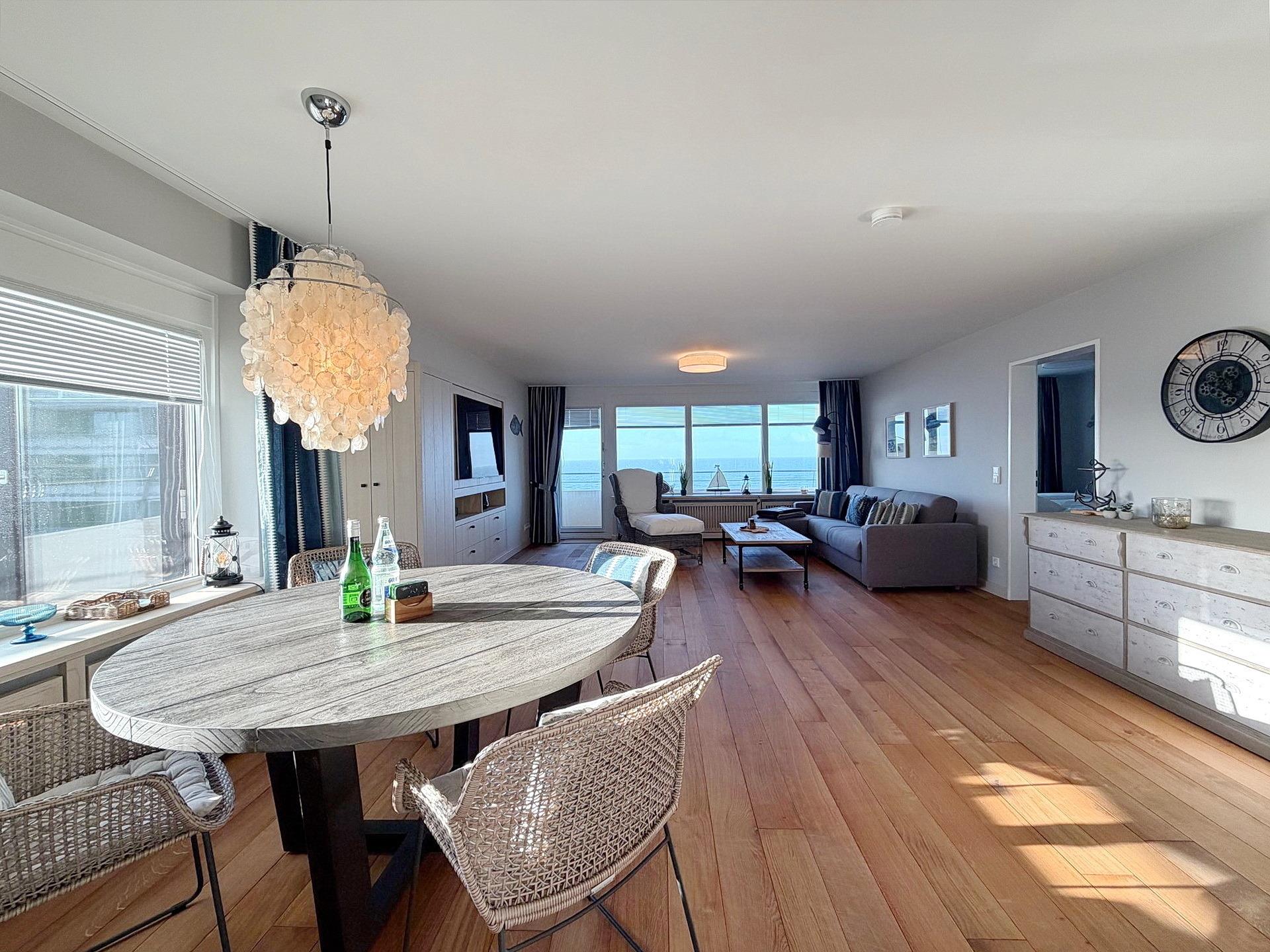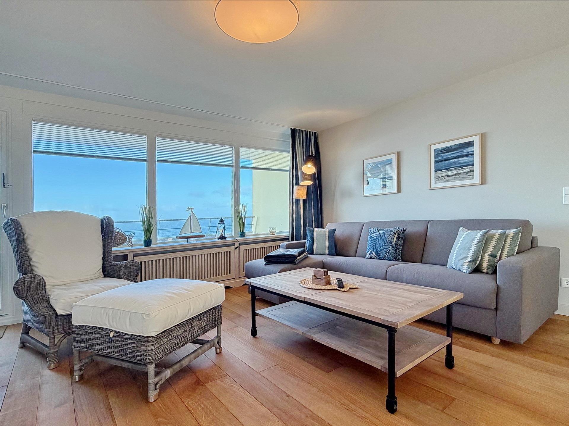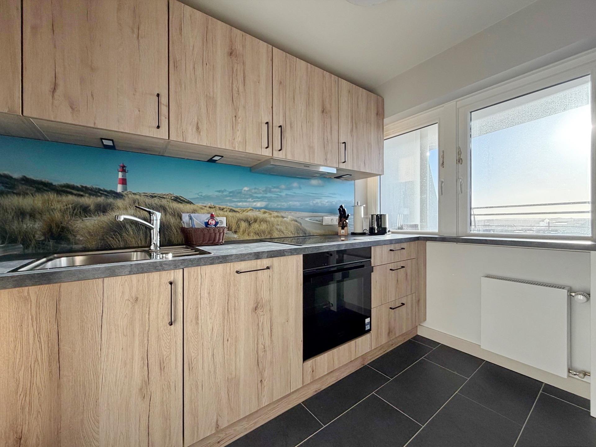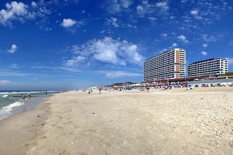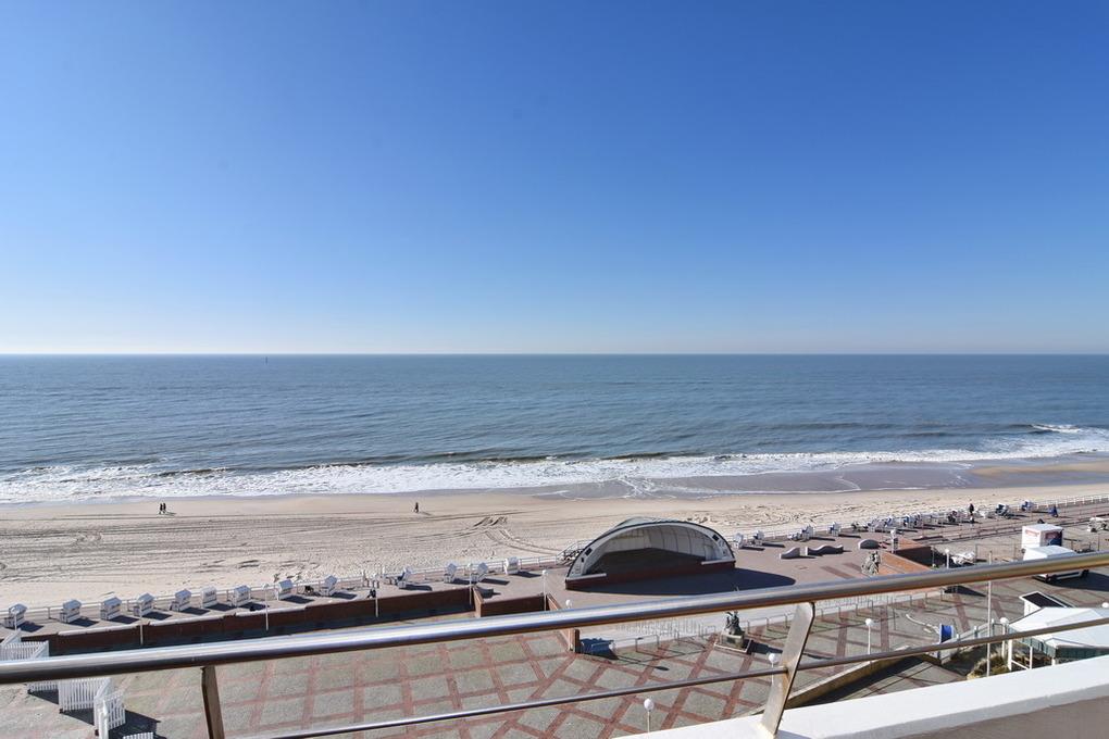 Erstklassig sanierte und renovierte 2-Zimmer-Wohnung in Südwestlage mit 3 sonnigen Balkonen für max. 3 Personen. Ca. 88 m², Die Wohnung befindet sich 5. OG zur Meerseite im Haus "Metropol". Großes Wohn- und Esszimmer mit Zugang zu 2 Balkonen. Eckcouch mit Schlaffunktion (140x200 cm) und Sessel. Esstisch mit Insel- und Meerblick gen Süden, Flat-TV, Radio, Internet (ohne Gewähr), uvm. Separate Küche mit Geschirrspüler, Backofen mit Mikrowellenfunktion und Induktionskochfeld. Großes Schlafzimmer mit Westbalkon und Doppelbett (180 x 200), Einbauschrank, Nachtschränken und Flat-TV. Badezimmer mit großer Dusche, Waschtisch und WC. Zugang sowohl vom Schlafzimmer als auch vom Wohnzimmer möglich. Garderobe im Eingangsbereich. Die Wohnung verfügt über diverse, maßgefertige Massivholzeinbauten sowie einen Massivholzeichenfußboden im Bereich des Wohn- und Schlafzimmers. Tierhaltung ist nach Anmeldung kostenpflichtig möglich. Ein Garagen-Stellplatz kann bei Buchungsabschluss zu € 15,--/Nacht dazu gebucht werden. Waschküche und Fahrradkeller befinden sich im Haus. Bettwäsche und Handtücher sind zur Anreise aufgezogen.