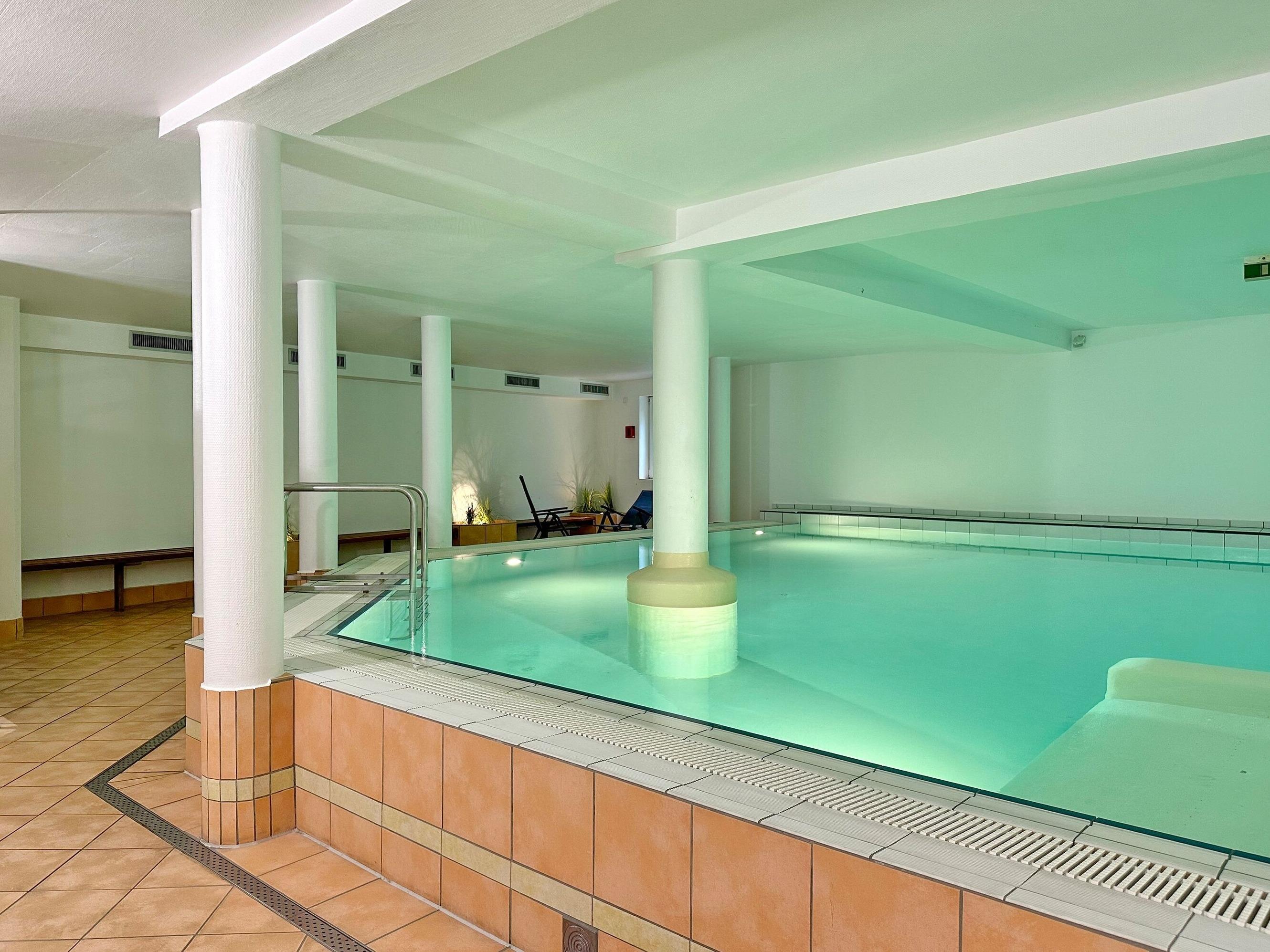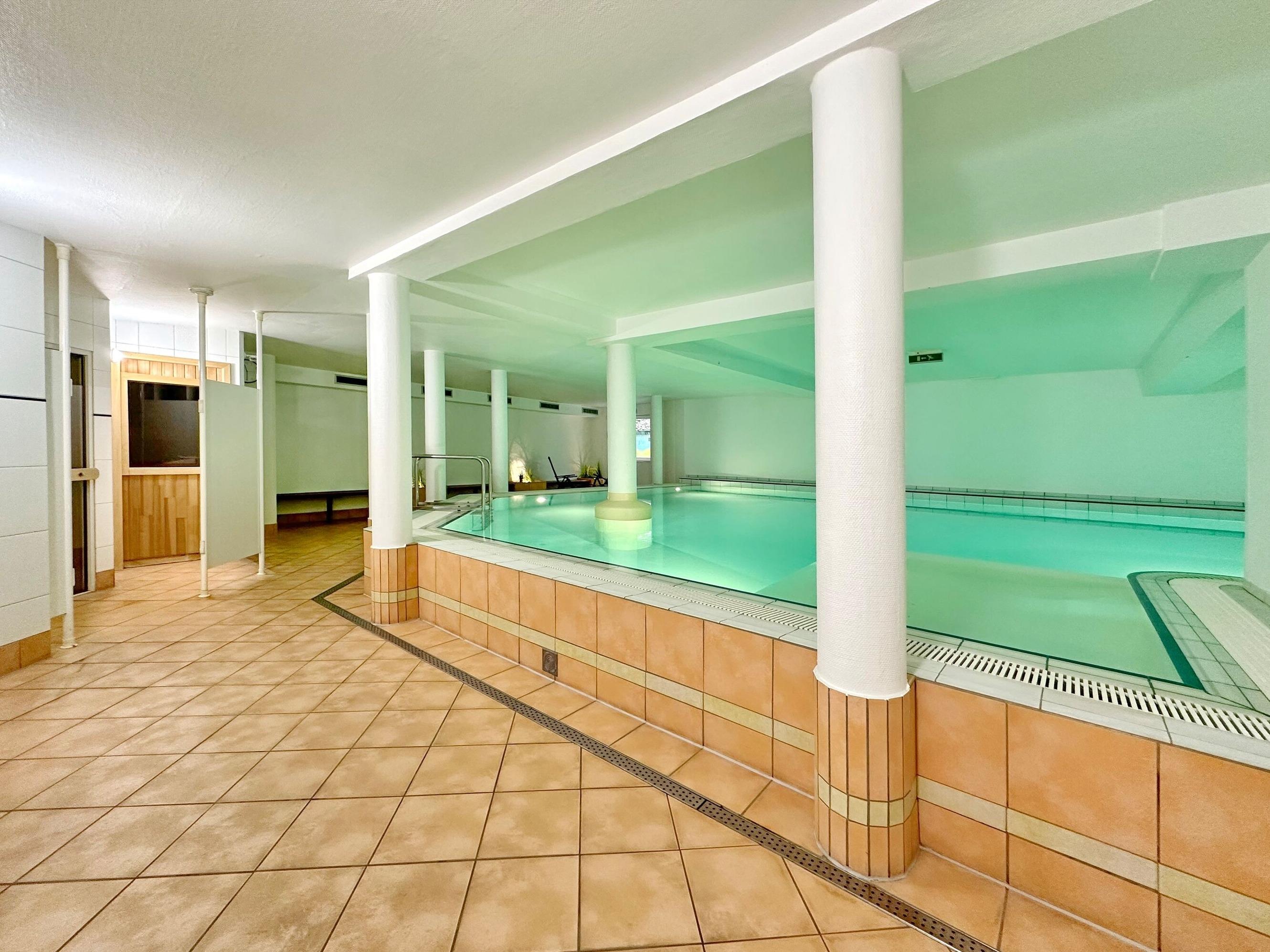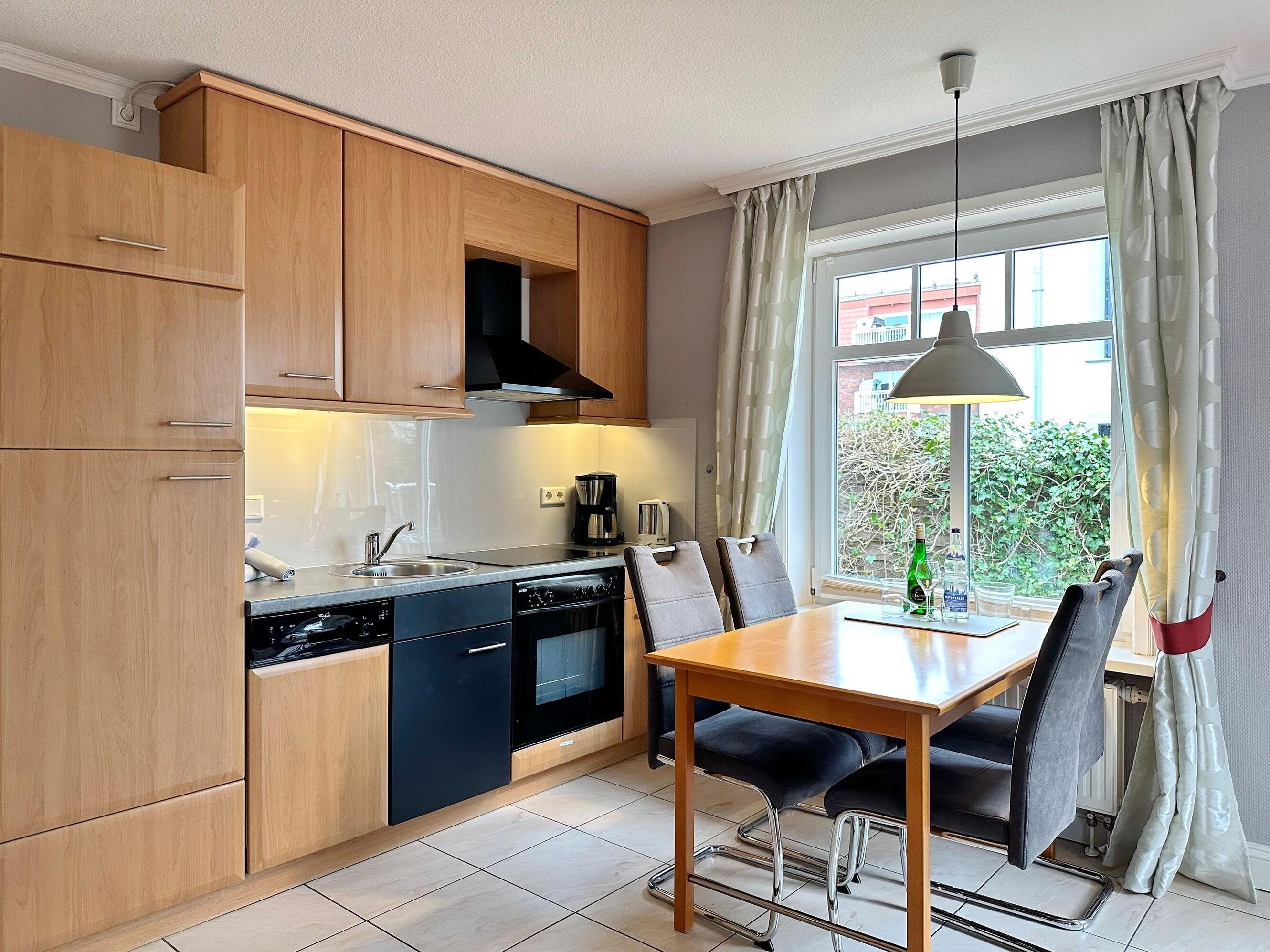 Hübsche 2-Zimmer-Ferienwohnung im Haus "Olympia IV" mit sonniger Südostterrasse, Strandkorb (Apr.-Okt.). Ca. 50m². Nichtraucherwohnung. EG: Wohnzimmer mit Küchenzeile mit Geschirrspüler und Backofen, Doppelschlafcouch und Essplatz für 4 Personen, Duschbad/WC, Schlafzimmer mit Doppelbett, Flur mit Garderobe, Kabel-TV und Radio. Unter Haus 4 befindet sich das Schwimmbad mit Finnischer Sauna. Unter Haus 2 befindet sich ein separater Wellnessbereich mit Dampfsauna, Finnischer Sauna und Ruhebereich. Eine Waschküche mit Gemeinschaftswaschmaschine/Trockner ist vorhanden. Offenes W-LAN-Netzwerk steht zur Verfügung (ohne Gewähr). Bettwäsche und Handtücher sind zur Anreise aufgezogen. Ein Garagenstellplatz kann kostenpflichtig gebucht werden!