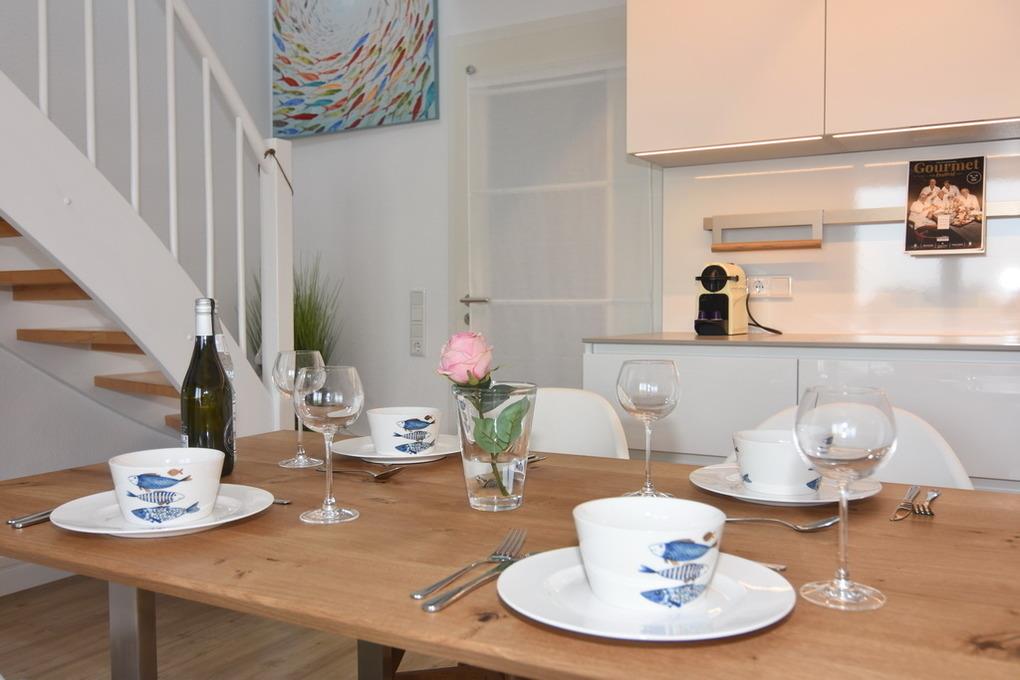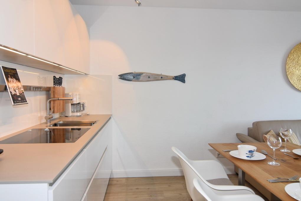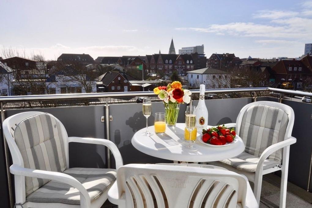 Diese helle lichtdurchflutete 2-Zimmer-Ferienwohnung im Zentrum von Westerland im blauen Haus der "Residenz Mauritius", im 2. OG mit Fahrstuhl glänzt mit ihren 2 Südbalkonen und freien Blick. Im ca. 24 qm großen Wohnbereich befindet sich eine moderne Hochglanzküche mit Kombigerät Mikrowelle/Backofen und Geschirrspüler. Vom Esstisch haben sie einen herrlichen Weitblick gen Süden. Vom Wohnbereich führt eine geräumige Treppe in den Schlafbereich mit einem bequemen Boxpringbett (180x200) und einem Sofa zum Entspannen und Lesen. Direkter Zugang vom Schlafzimmer zum Südbalkon. Kabel-TV, Internetanschluss (ohne Gewähr). Waschküche und Fahrradkeller sind im Nachbarhaus "Mauritius" vorhanden. Pkw-Stellplatz kann kostenpflichtig hinzugebucht werden. Bettwäsche und Handtücher sind zur Anreise aufgezogen! Tierhaltung und Rauchen sind nicht gestattet.
