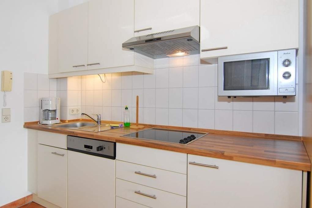 Moderne 1-Zimmer-Ferienwohnung im roten Haus der Residentz Mauritius, Nichtraucher-Whg., ca. 31m², 1. OG. Wohn-/Schlafraum mit Südbalkon, Doppelbett (2x90x200), Essplatz, 2 Sessel, Kabel-TV, Küchenzeile mit Geschirrspüler und Mikrowelle, Duschbad/WC. Das Apartment ist komplett gefliest. Internetanschluß (ohne Gewähr). Waschküche und Fahrradkeller im Nebenhaus "Mauritius". Pkw-Stellplatz kann kostenpflichtig hinzugebucht werden. Bettwäsche und Handtücher sind zur Anreise aufgezogen! Tierhaltung ist nicht gestattet.