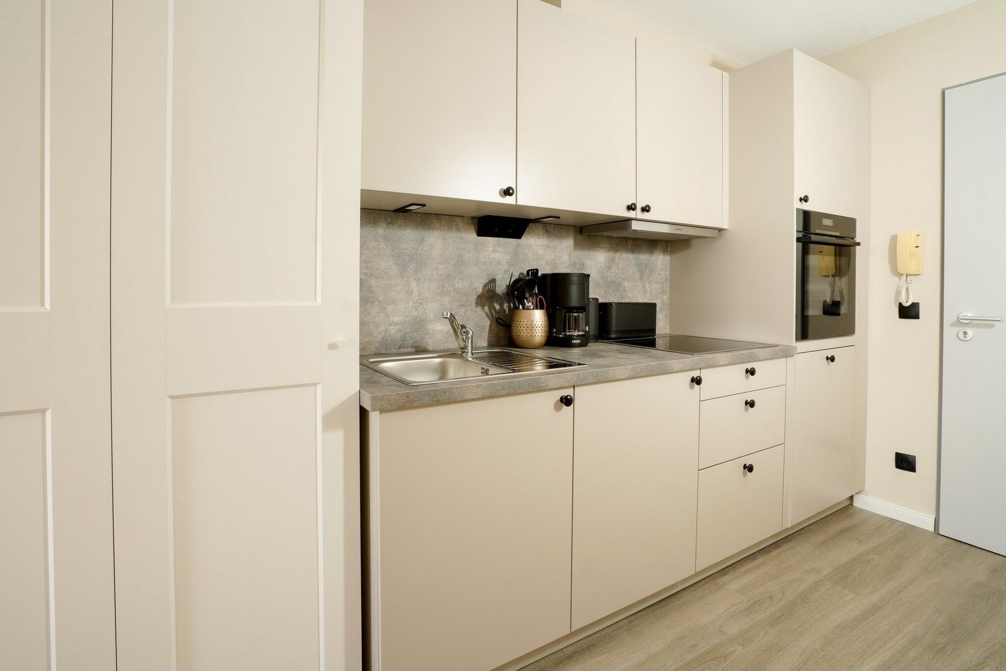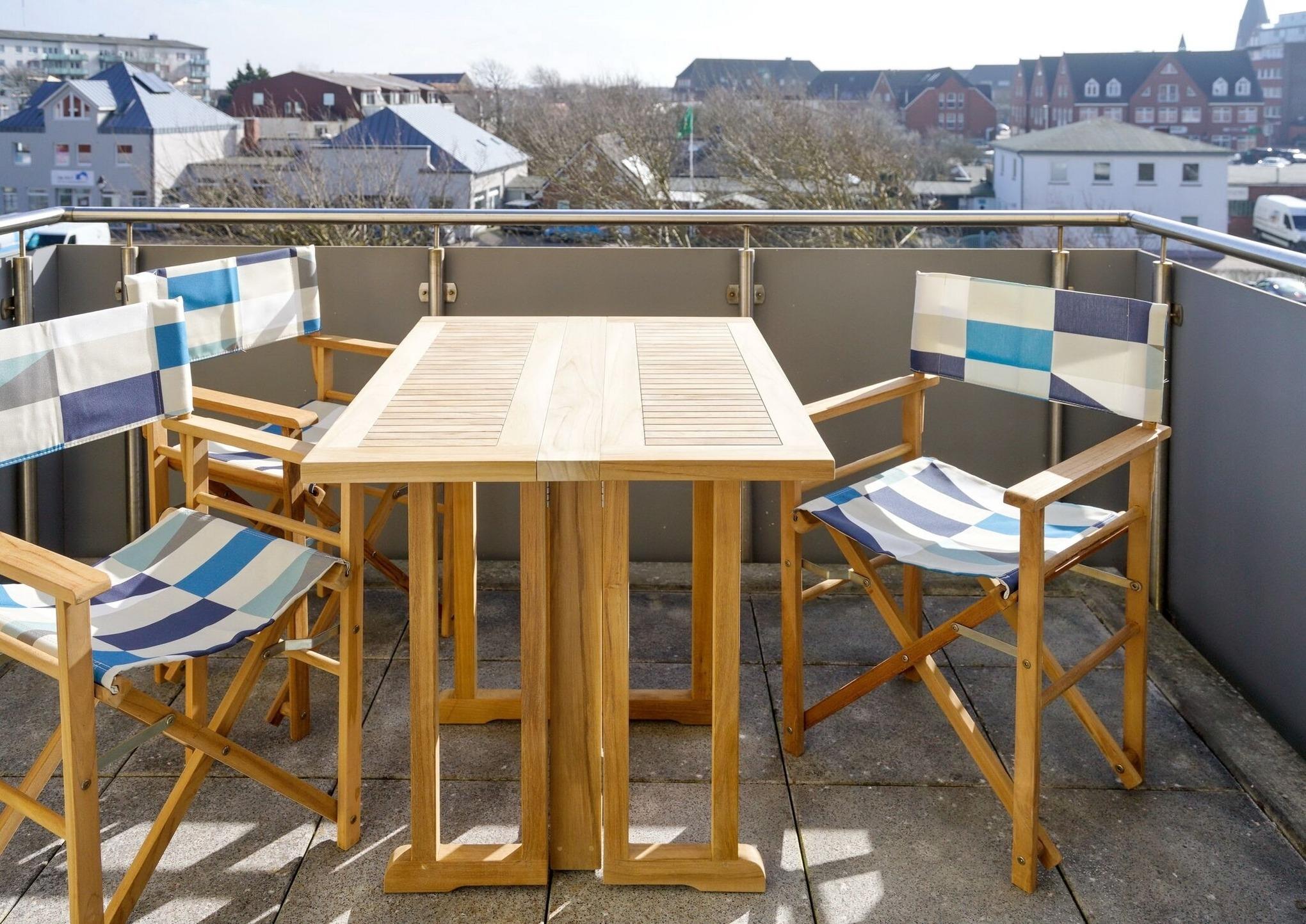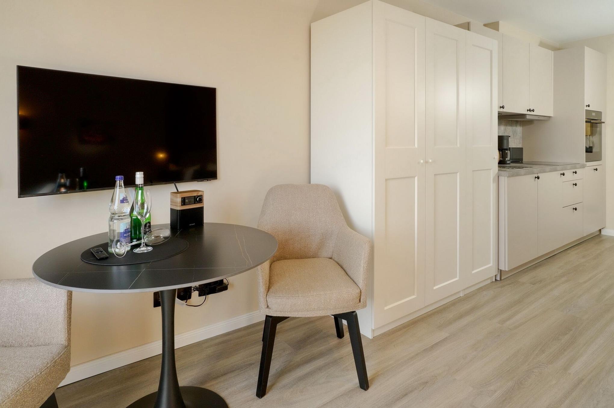 Modernes 1-Zimmer-Apartment mit Südbalkon und moderner Ausstattung in Westerland, perfekt für einen komfortablen Urlaub zu zweit.
