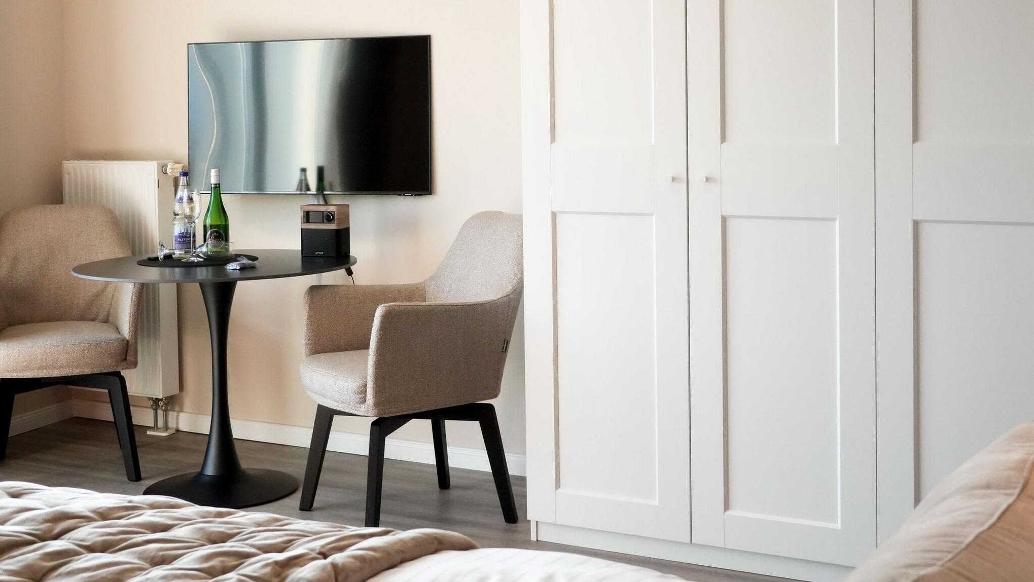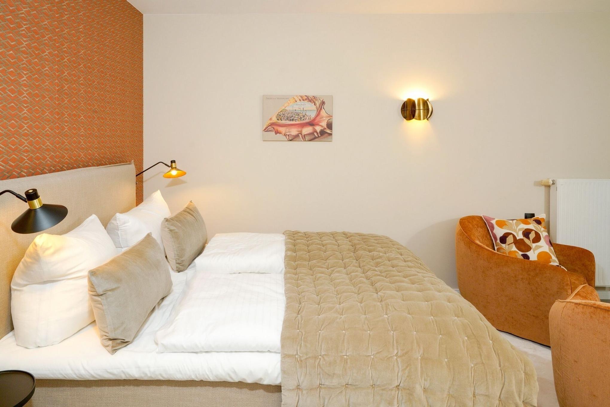 Modernes 1-Zimmer-Apartment in der "Residenz Mauritius" im gelben Haus, ca. 26 m², Nichtraucher. 2. OG: Wohn-/ Schlafraum mit Südbalkon, Boxspringbett (160x200), Essplatz, 2 Sessel, TV, Küchenzeile mit Mikrowelle und Geschirrspüler, Flur, Duschbad/ WC. Waschküche und Fahrradkeller im Nebenhaus "Mauritius". Pkw-Stellplatz kann kostenpflichtig hinzugebucht werden. Bettwäsche und Handtücher sind zur Anreise aufgezogen! Tierhaltung ist nicht gestattet.