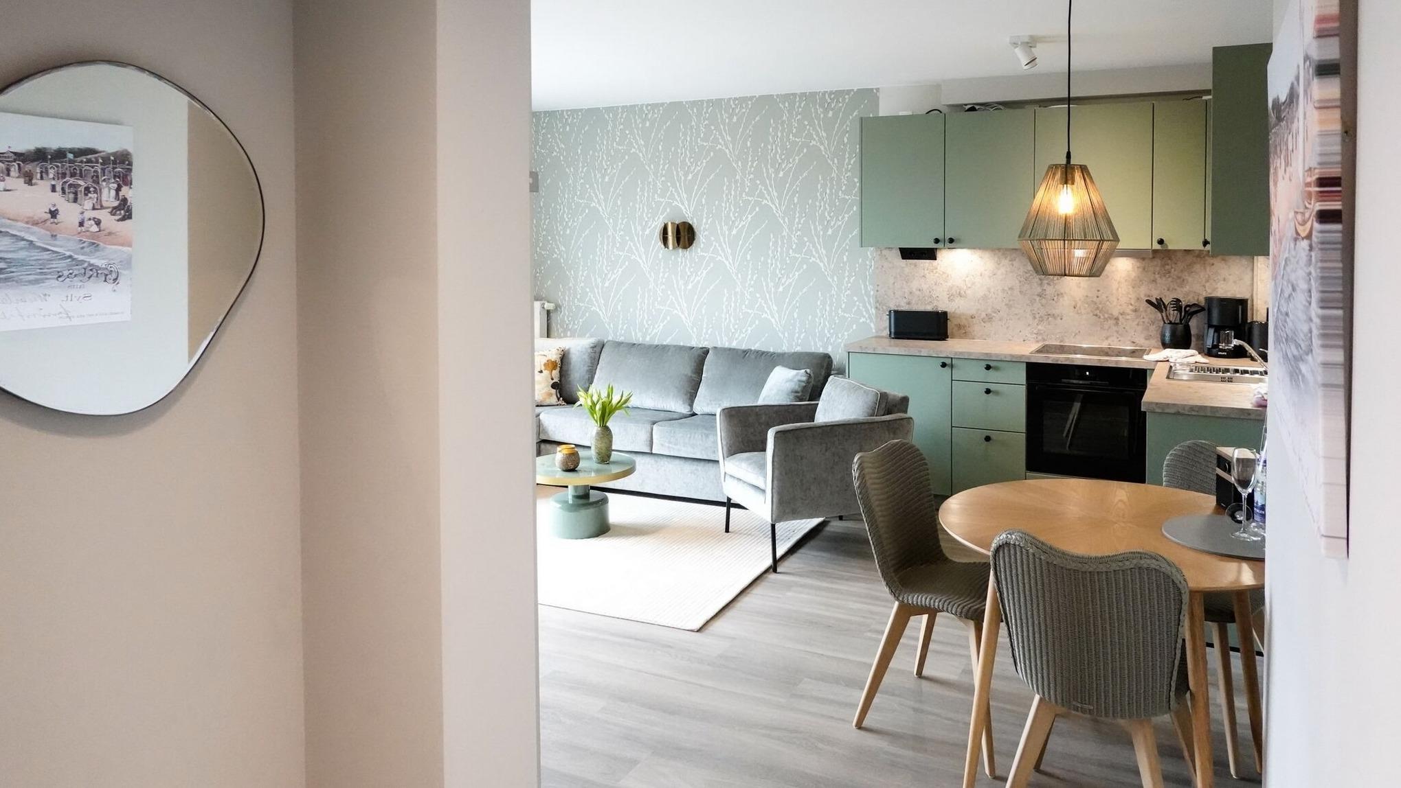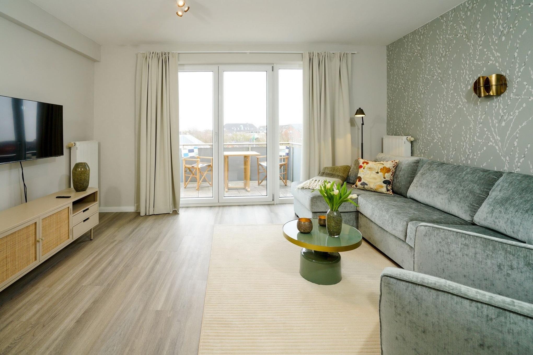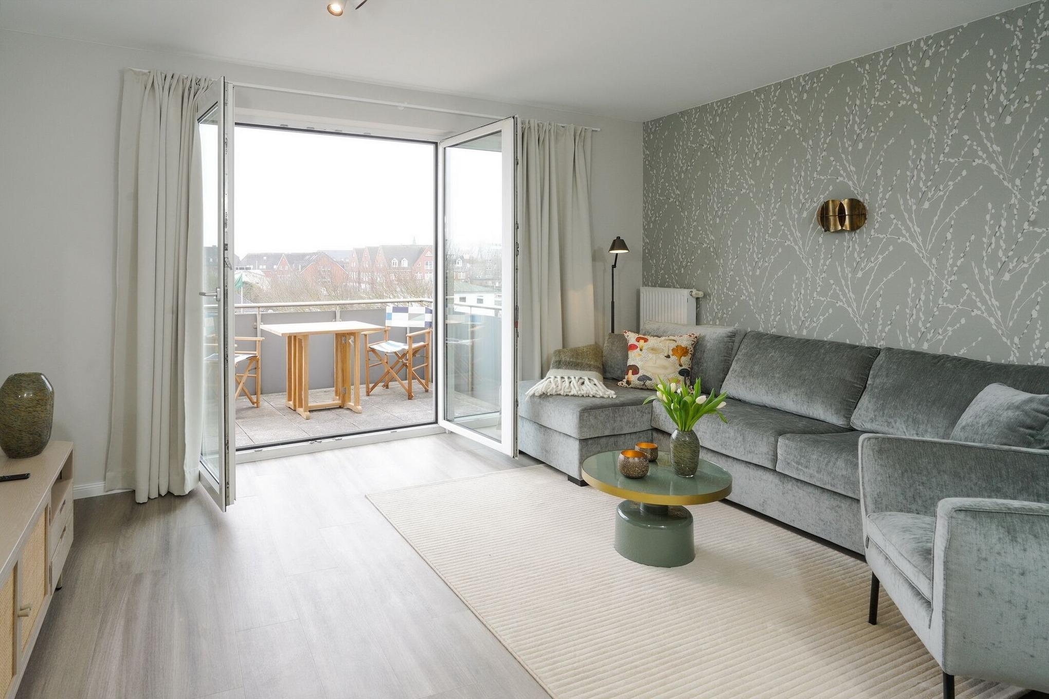 Moderne 2-Zimmer-Ferienwohnung mit Südbalkon und offener Küche im Zentrum von Westerland.