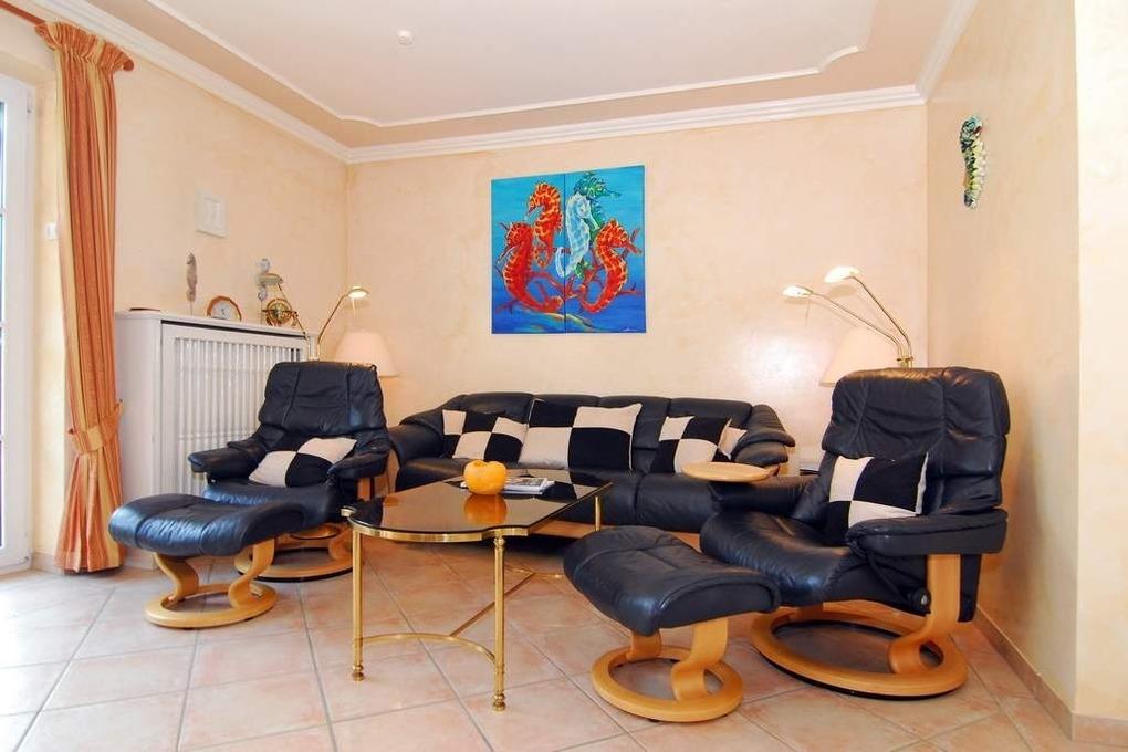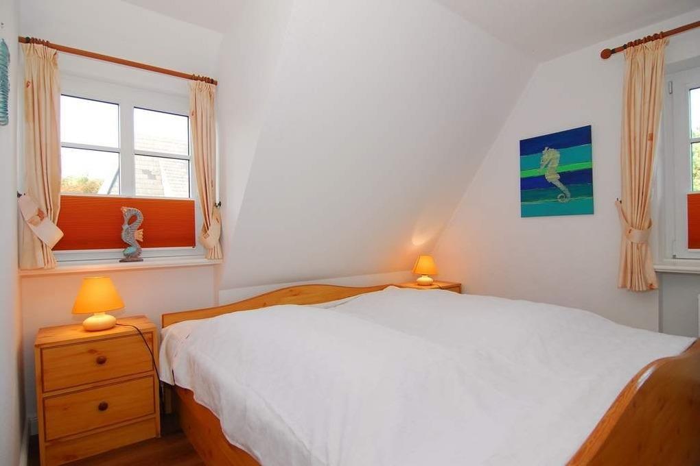 Ferienhaus in ruhiger Lage. Ca. 110 qm. Nichtraucherobjekt. EG: Wohnzimmer mit Couch- und Essecke, TV, Radio, Telefon, separate Küche mit Geschirrspüler, Mikrowelle, Backofen und Nespresso-Maschine, Duschbad/WC. OG: 2 Schlafzimmer mit Doppelbett und TV, 1 Schlafzimmer mit Einzelbett. Duschbad/WC. DG: Schlafzimmer mit Doppelbett und TV, Waschmaschine/Wäschetrockner, Kinder-Reisebett und Kinderhochstuhl im Haus. W-LAN! (ohne Gewähr) Große Südterrasse mit Strandkorb. Tierhaltung verboten. Bettwäsche und Handtücher sind zur Anreise aufgezogen.