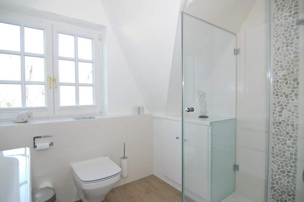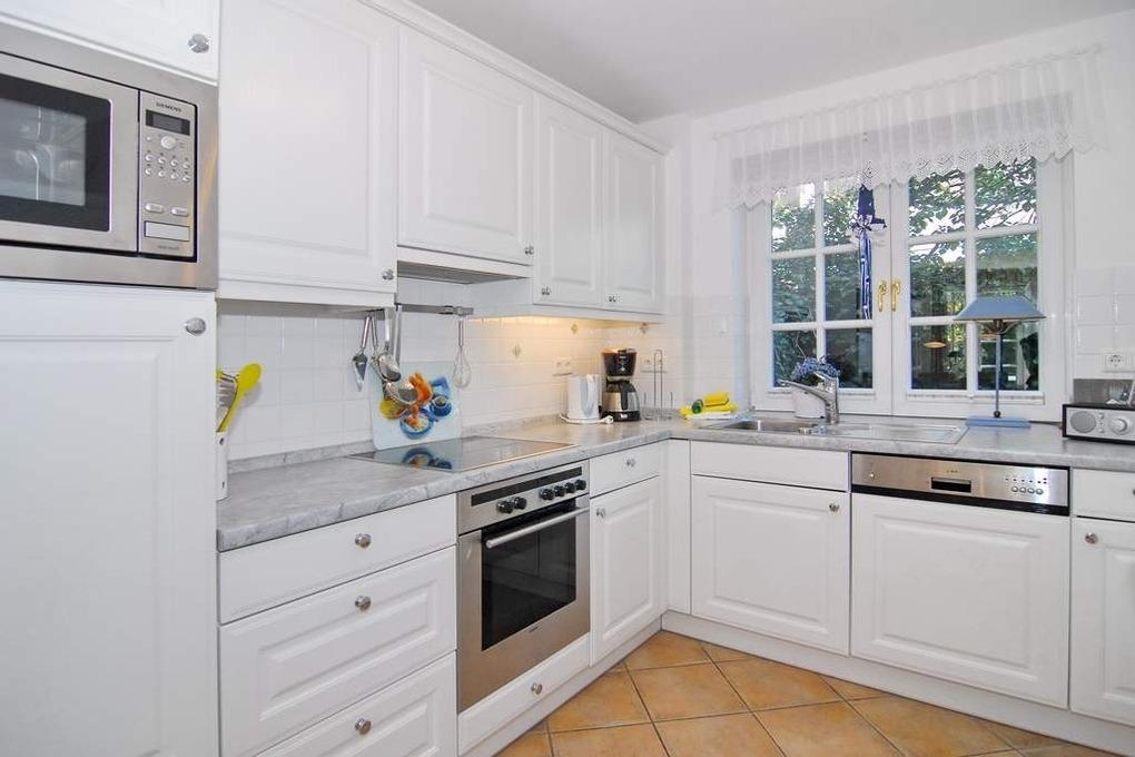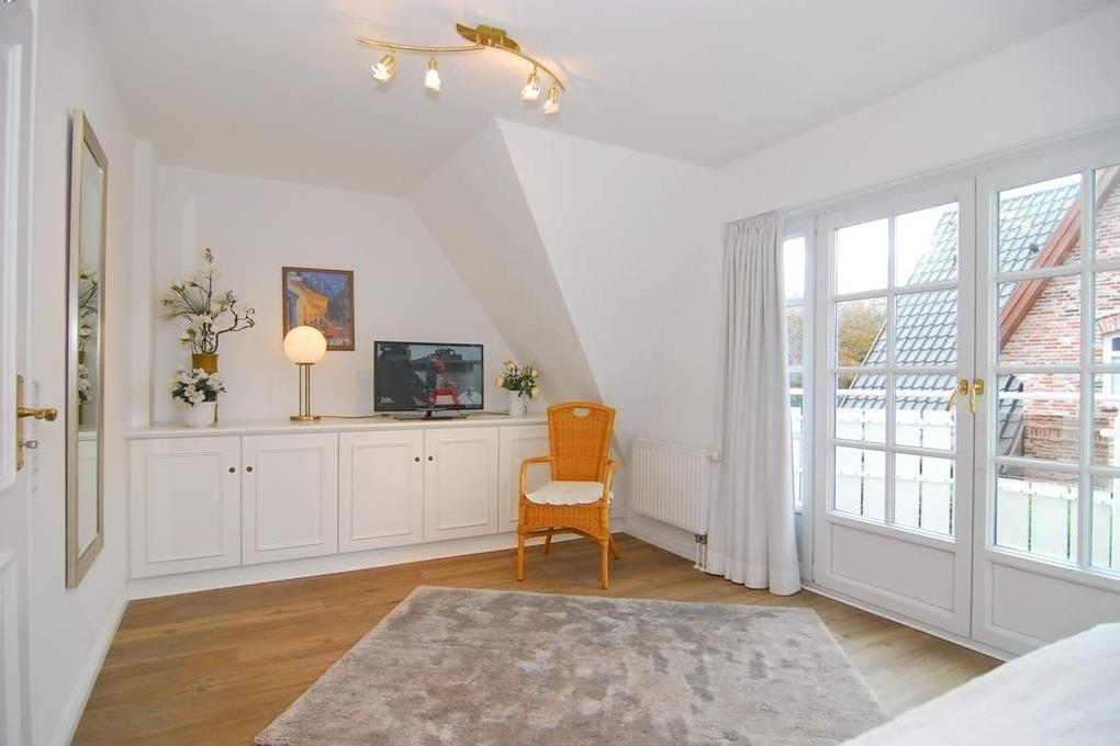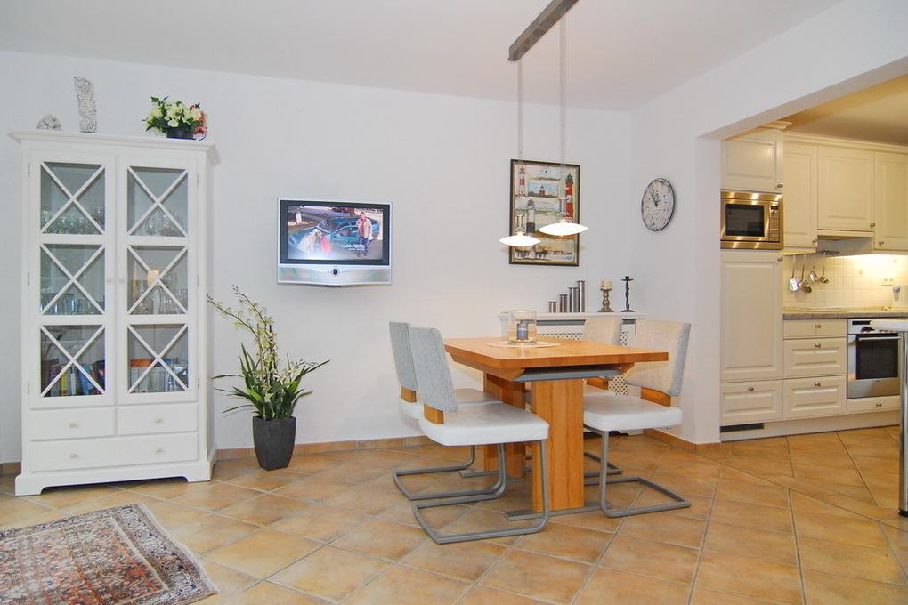 Exclusives Ferienhaus (Mittelhaus), ca.105qm, ruhige Lage. Mindestbuchung 7 Tage! Nichtraucher-Whg.! EG: Wohnzimmer mit Couch, 2 Sessel, Eßecke, Kabel-TV,Radio, W-Lan (ohne Gewähr), Südterrasse m. Gartenmöbel, Strandkorb (Apr.-Okt.), offene Küche mit Geschirrspüler und Microwelle/Backofen, Dusche/WC, EG ist gefliest. OG: Schlafzimmer mit Doppelbett (160x200) und Südbalkon, kleines Schlafzimmer mit Einzelbett, Duschbad/ WC, Einbauschränke. DG: Schlafraum mit 2 Einzelbetten, TV, Schreibtisch. OG und DG mit Laminat. Kinder-Reisebett ist vorhanden. Bettwäsche und Handtücher sind zur Anreise aufgezogen. Tierhaltung nicht gestattet. Wasch-Trockner vorhanden.