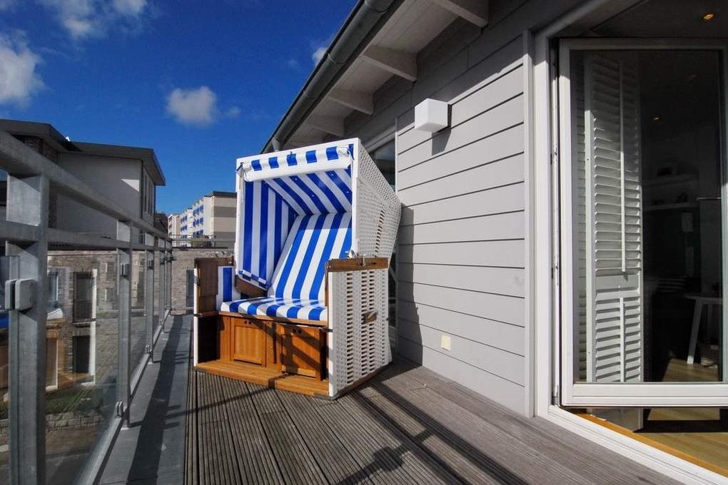 Exklusive 3-Zimmer-Ferienwohnung - Penthouse, 2. OG, ca. 90m², "Nichtraucher", Wohnzimmer mit Couch, Sessel, Esstisch mit Eckbank und 2 Rattanstühlen, Flat-TV, WLAN (ohne Gewähr), Musikanlage, offene Küche mit Geschirrspüler, Mikrowelle und Backofen, Zugang zur Südterrasse, 1 Schlafzimmer mit Doppelbett, Einbauschrank und Flat-TV und Zugang zur Terrasse, 1 Schlafzimmer mit Etagenbetten (Matratzen 1x2m) Einbauschrank und Flat-TV, 1 großes Duschbad / WC, 1 Gäste-WC, Flur mit Garderobe, Abseite mit Waschmaschine, Pkw-Stellplatz am Haus. Tierhaltung ist nicht gestattet. Bettwäsche und Handtücher sind zur Anreise aufgezogen. Auf dem östlich angrenzenden Nachbargrundstück entsteht ein Neubauvorhaben mit Baubeginn Juli 2024 - geplante Fertigstellung Winter 2026. Hier kann es zu Lärmbelästigung kommen.