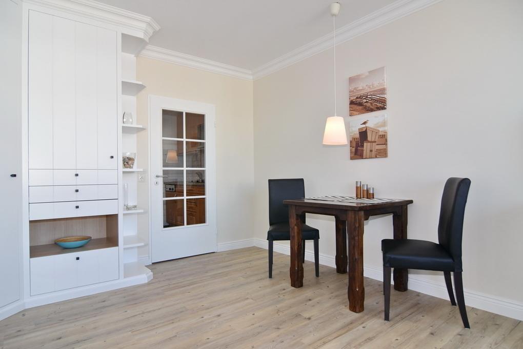 Mitten im Herzen von Westerland und nur wenige Minuten vom Strand entfernt, hat diese hübsche 1-Zimmer-Wohnung die perfekte Ausgangslage zur Erkundung der Insel. Die Wohnung hat einen[nbsp][nbsp]Wohn-/Schlafraum mit großem Nordbalkon, Einzelschrankbetten ( 2 Matratzen je 80x200 ), Sitz- und Essgruppe, Flat-TV, W-Lan (ohne Gewähr) und einen Kleiderschrank. Eine Küchenzeile im Flurbereich mit Geschirrspüler und Mikrowelle und ein modernes Duschbad / WC runden das Angebot ab. Tierhaltung und Rauchen sind in der Wohnung nicht gestattet. Im Haus befindet sich eine Waschküche mit Münz-Waschmaschine und -trockner. Zur Wohnung gehört der Garagenstellplatz Nr. 128 (Zufahrt von der Elisabethstr.). Bettwäsche und Handtücher sind zur Anreise aufgezogen.