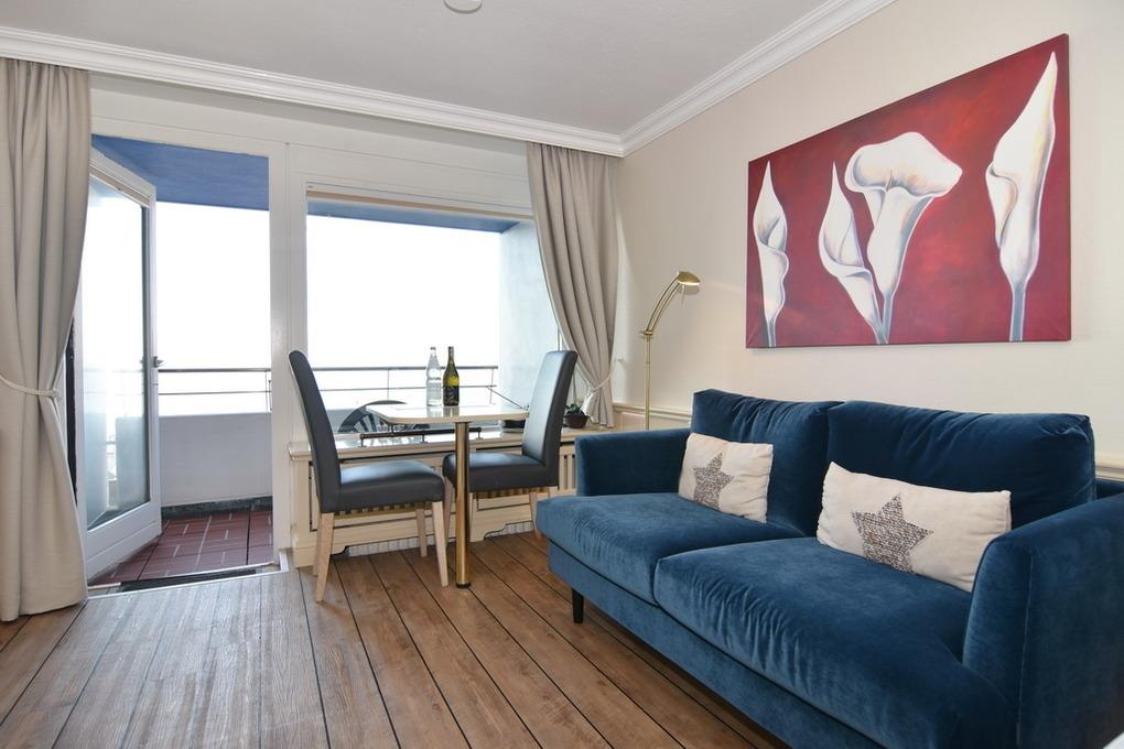 Gemütliche 1-Zimmer-Ferienwohnung mit Meerblick und Balkon in Westerland auf Sylt.