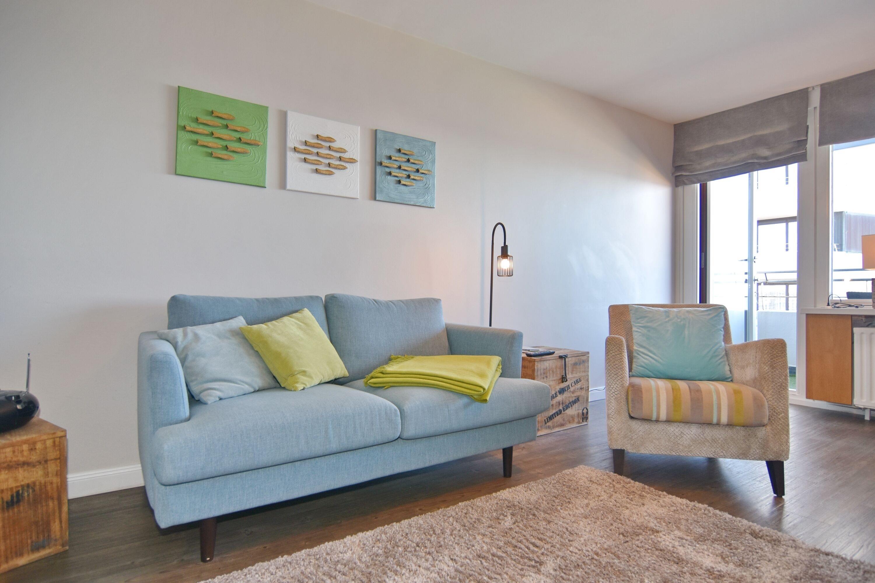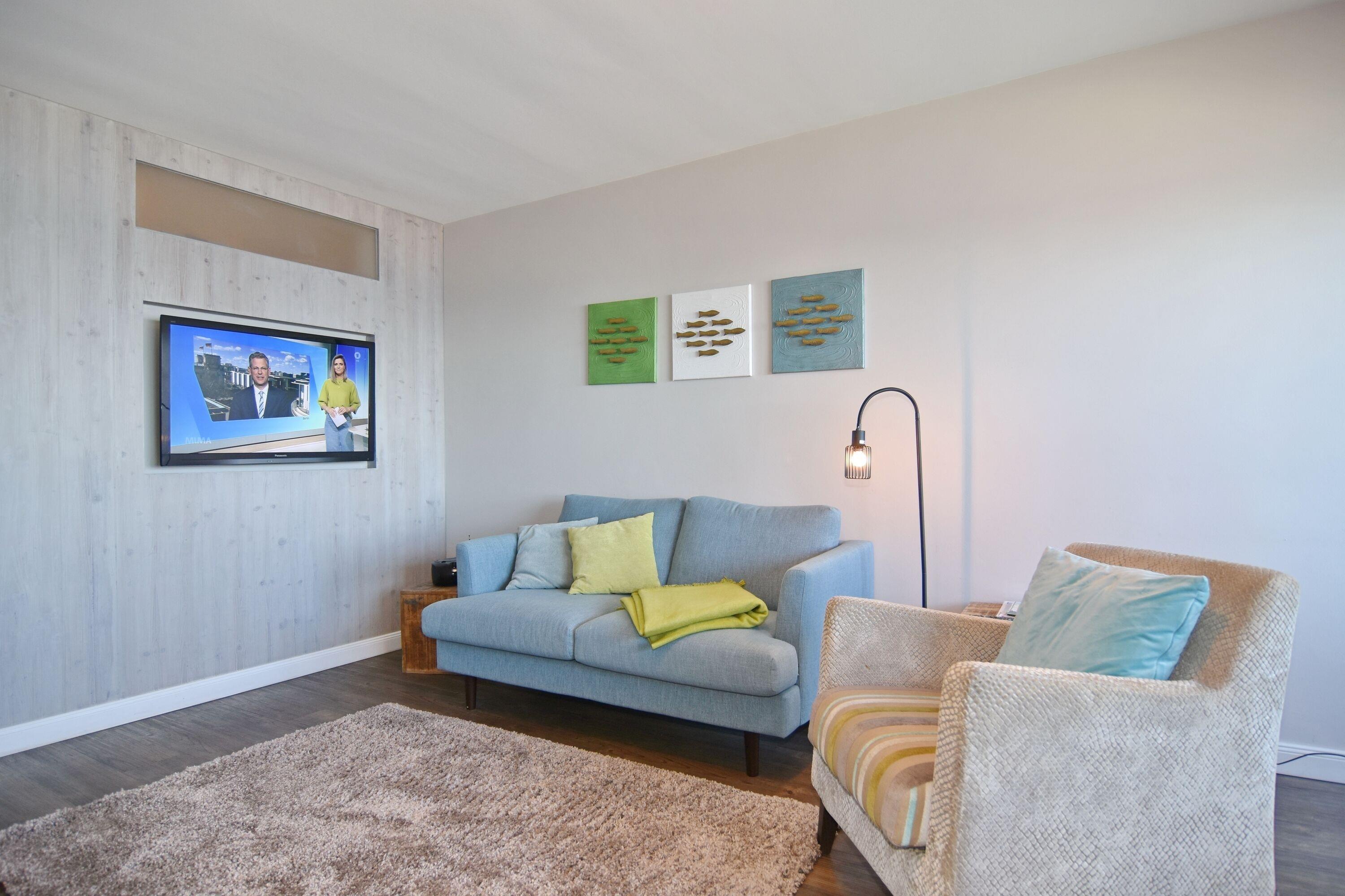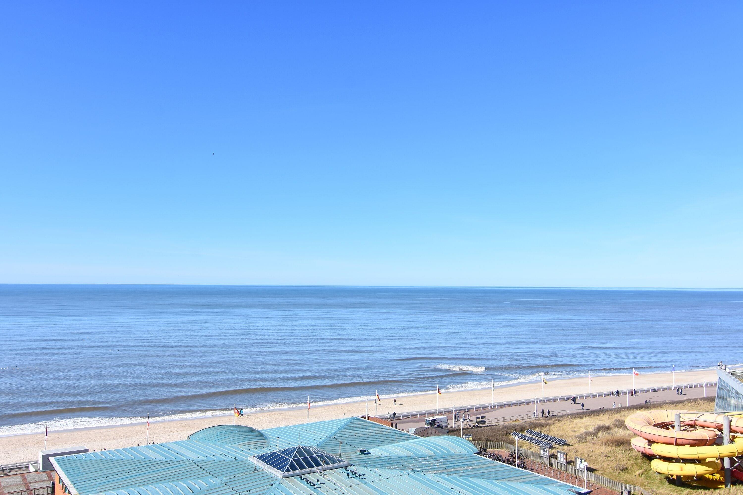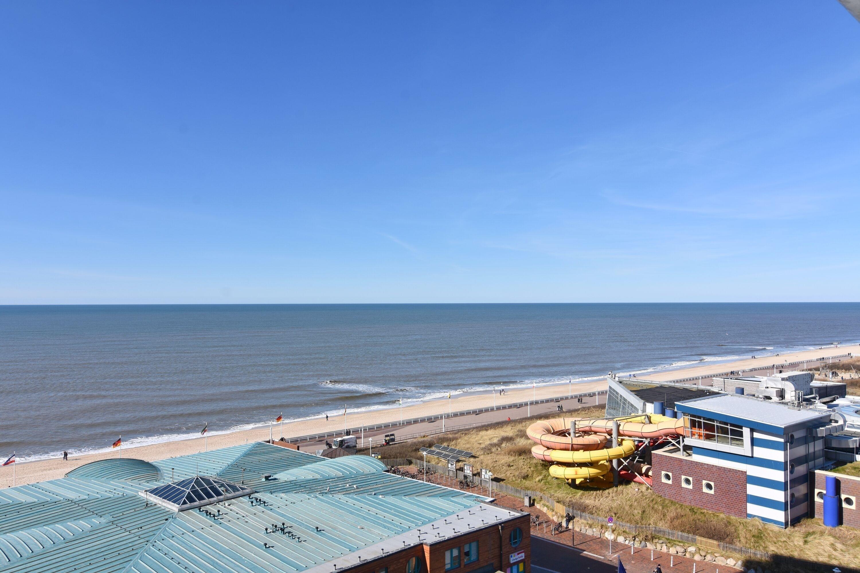 Moderne 1-Zimmer-Ferienwohnung im 8. OG mit Meerblick in Westerland, perfekt für einen entspannten Urlaub zu zweit.