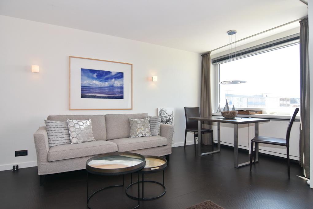"Tö Fiirens" - friesisch für "In der Ferne". Exklusive 1-Zimmer-Ferienwohnung im "Windhuk". Ca. 44m² im 5. OG mit freiem Seeblick. Die perfekt gestaltete Wohnung bietet ein erhöhtes Doppelbett mit Seeblick, eine Couchecke sowie einen Essplatz am Fenster. Die separate Küche ist mit Geschirrspüler und Mikrowelle ausgestattet, großzügiges Duschbad/WC. Flat-Screen, Stereoanlage mit Dockingstation, Internet/dt. Festnetzflat, Safe, Westbalkon mit Balkonmöbeln, Pkw-Stellplatz Nr. 37. Bettwäsche und Handtücher sind zur Anreise aufgezogen. Waschküche im Haus!