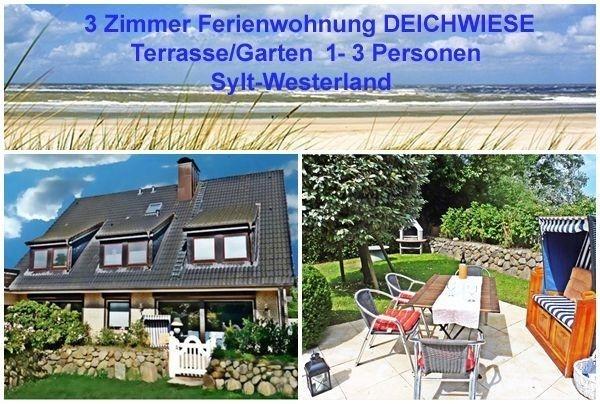 Die Komfort Ferienwohnung Deichwiese mit Terrasse/Garten liegt ruhig und zentral in Westerland auf Sylt. Diese moderne FeWo bietet in dieser Buchungsvariante auf 55 qm 3 schöne Zimmer auf einer Etage (das 4. Zimmer /Studio im OG ist dann geschlossen).