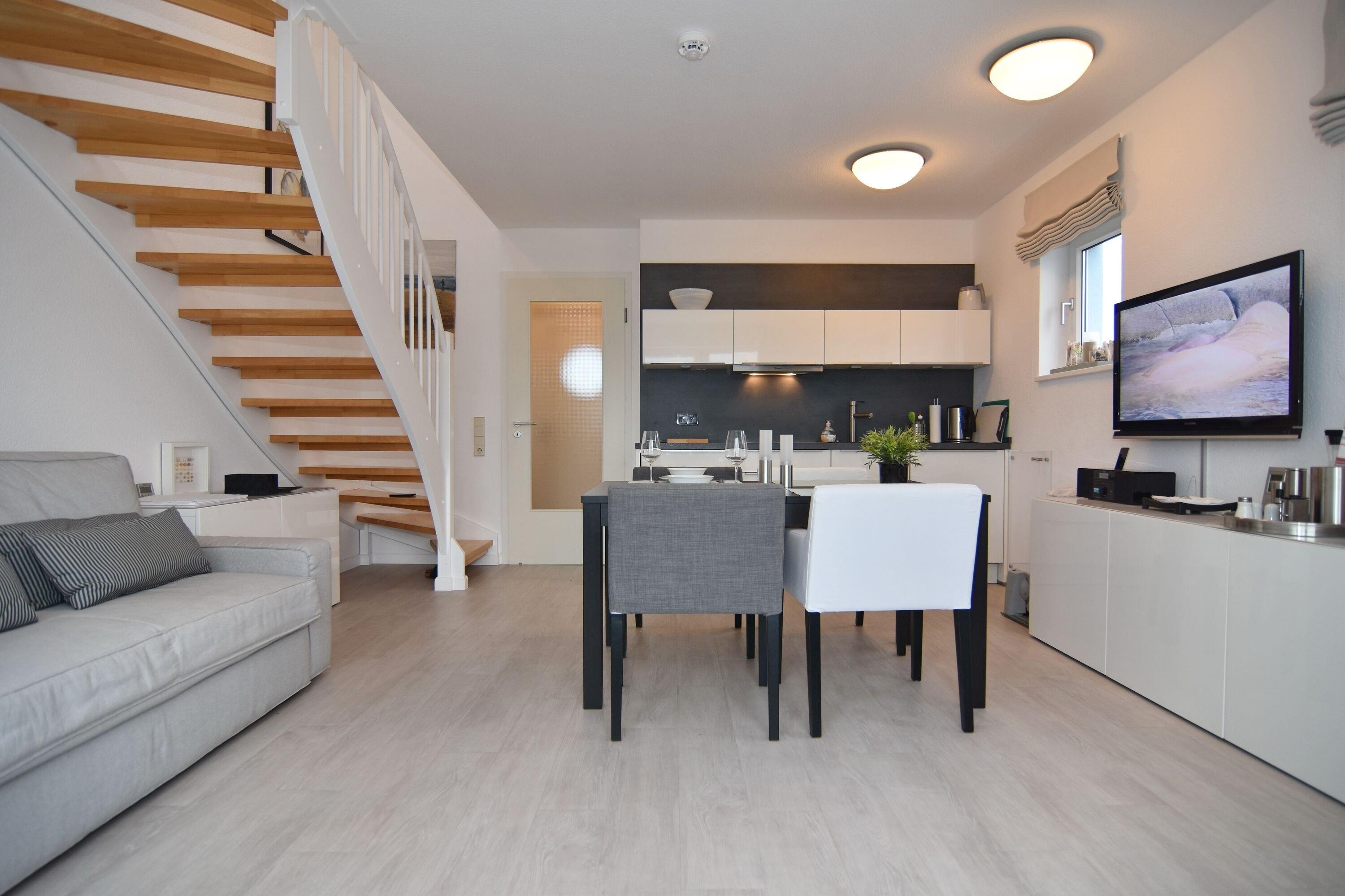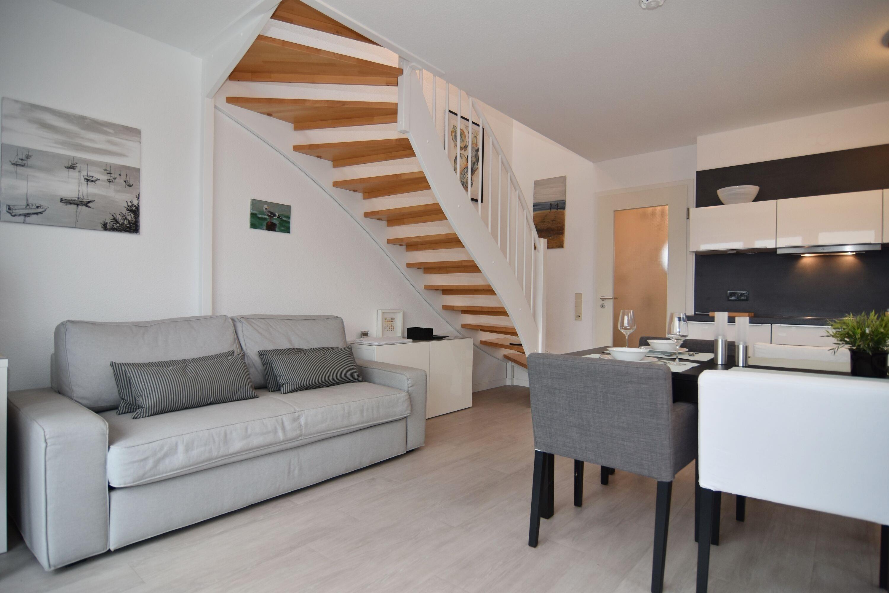 2-Zimmer-Wohnung in der "Residenz Mauritius" im blauen Haus, ca. 53 m², Nichtraucher.[nbsp][nbsp]2. OG/DG: OG: Wohn-/Essraum mit Südbalkon, Essplatz, 2-Sitzer-Couch, TV, Einbauküche mit Geschirrspüler, Flur mit Einbauschrank, Duschbad / WC. DG: Schlafzimmer mit Doppelbett (180x200), Einbauschrank, TV, Couch und Südterrasse. Internetanschluß (ohne Gewähr). Waschküche und Fahrradkeller im Nebenhaus "Mauriitus". Pkw-Stellplatz kann kostenpflichtig hinzugebucht werden. Bettwäsche und Handtücher sind zur Anreise aufgezogen! Tierhaltung ist nicht gestattet.