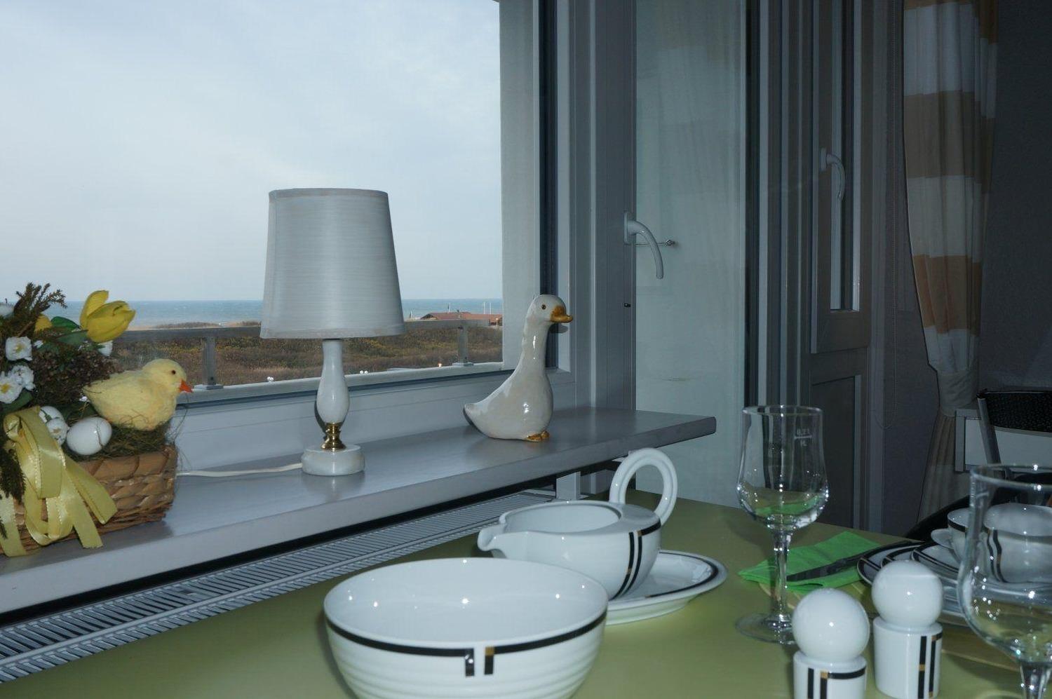 Die Fewo (Westseite) hat Meerblick, ist ruhig, gemütlich und komplett eingerichtet, sonnig und gepflegt.